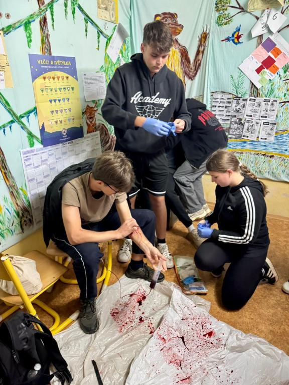 rozhodčí, kterými jsou profesionální záchranáři a studenti SZŠ