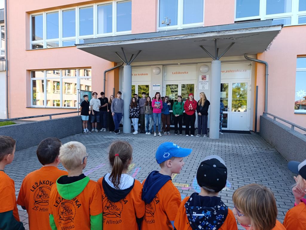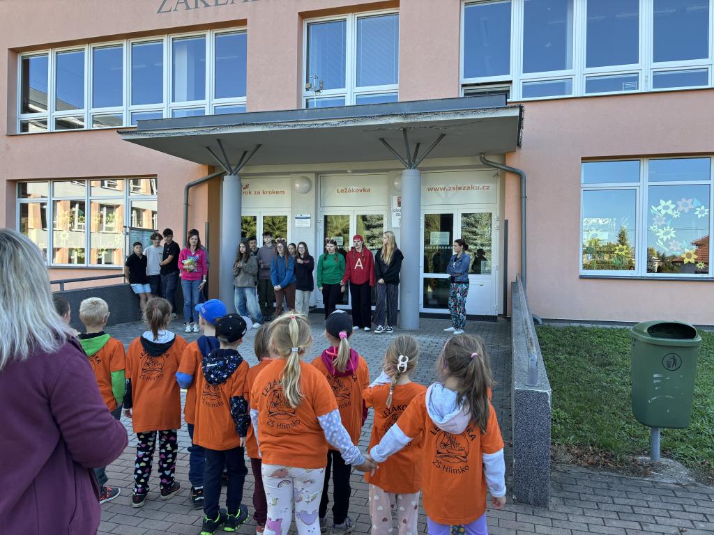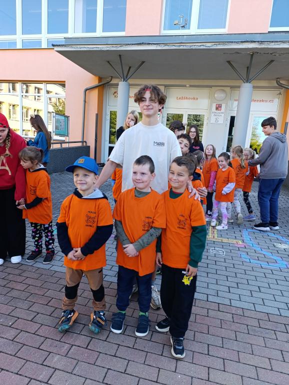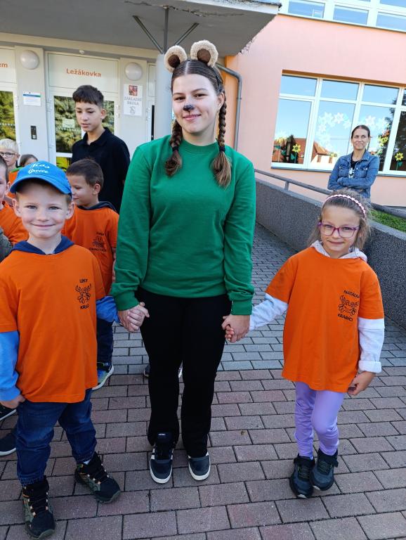 V pátek 19. 9. využili naši velcí patroni (deváťáci) krásného počasí a připravili si pro obě třídy prvního ročníku (Krabíky i Chobotničky) pohádkovou stezku.