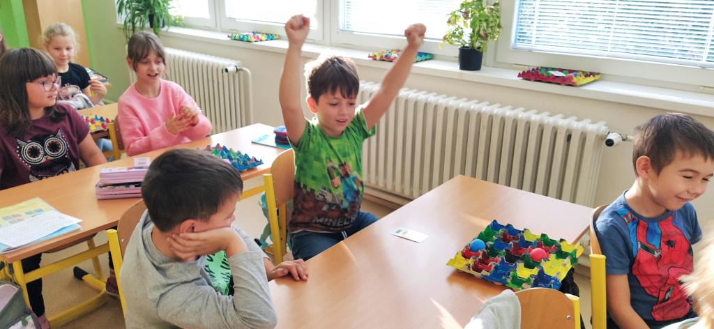 Výsledkem je hra, díky které si děti mohou procvičovat sčítání a odčítání desítek, porovnávání čísel i určování čísel větších nebo menších o daný počet. Druháčci si hru ve škole rovnou společně vyzkoušeli a moc se jim líbila. Společně se u hraní nasmáli, přemýšleli, počítali – a zjistili, že učení opravdu může být zábava!