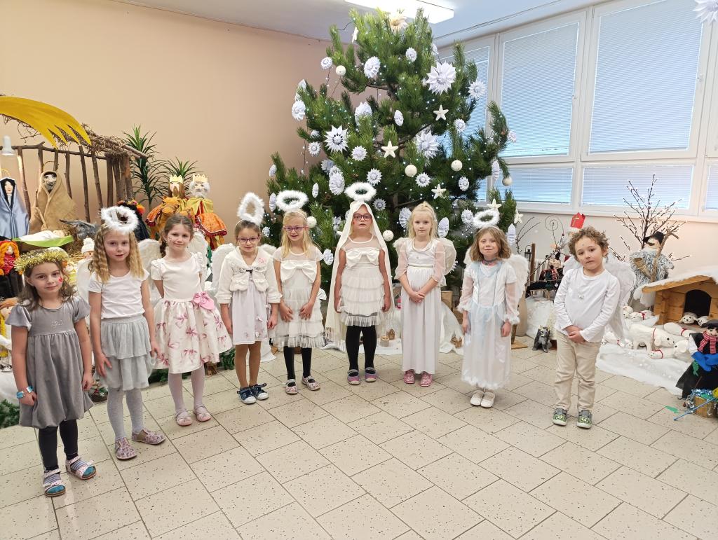 Dnes nechyběly ani tematické úkoly – počítání s čertíky, vymýšlení čertovských slov na zadané slabiky. Děti pracovaly s nadšením. Celé dopoledne se neslo v duchu radosti, pohody a přátelství.