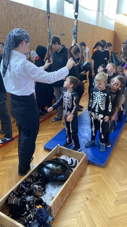 Program halloweenského dne byl nabitý originálními a strašidelnými disciplínami, které prověřily odvahu, zručnost i smysl pro humor zúčastněných. Každá třída se navíc na akci pečlivě připravila. V rámci třídního úkolu si žáci vyrobili originálního ducha, vymysleli si jedinečný halloweenský pokřik, dokonce si připravili strašidelnou básničku, kterou přednesli před ostatními. Tyto aktivity dodaly celé akci osobní a kreativní nádech.