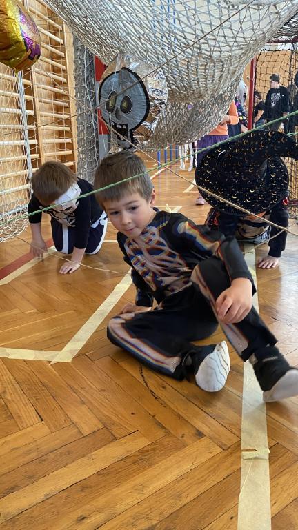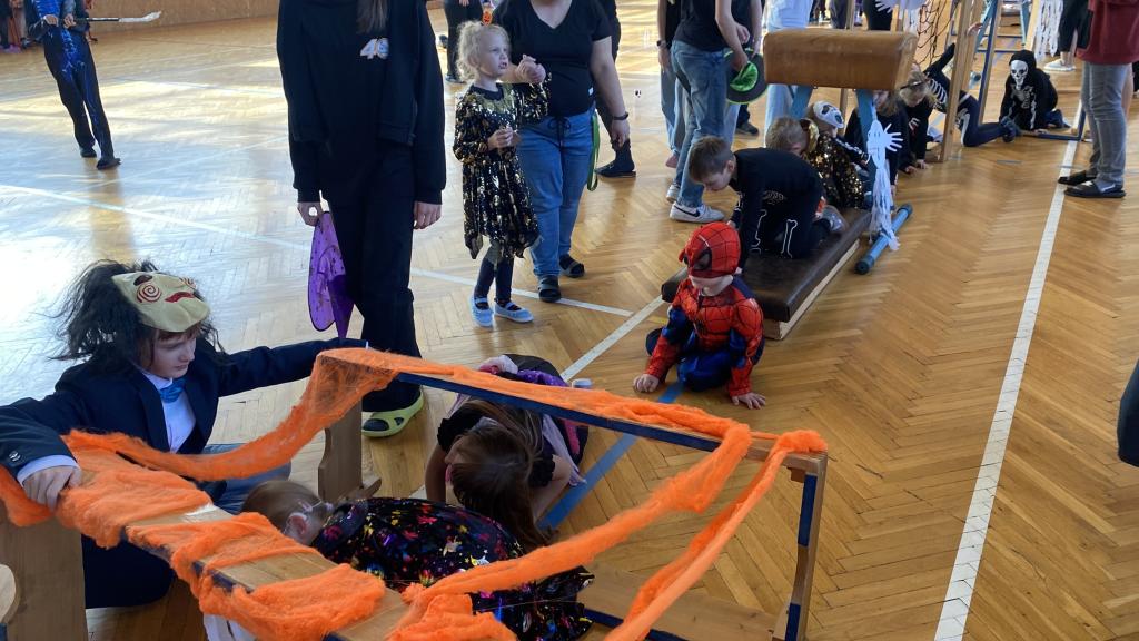 Děti plnily různé úkoly; zavěšený bonbón na provázku, závod s dýní nebo se strašidelným okem, pavučinové prolézání, tanec s duchy, strašidelný slalom, přeskakování nebezpečných pavouků, halloweenský kvíz a bingo, tajemnou krabici plnou překvapení a ochutnávací soutěž.
