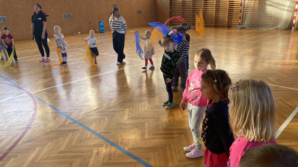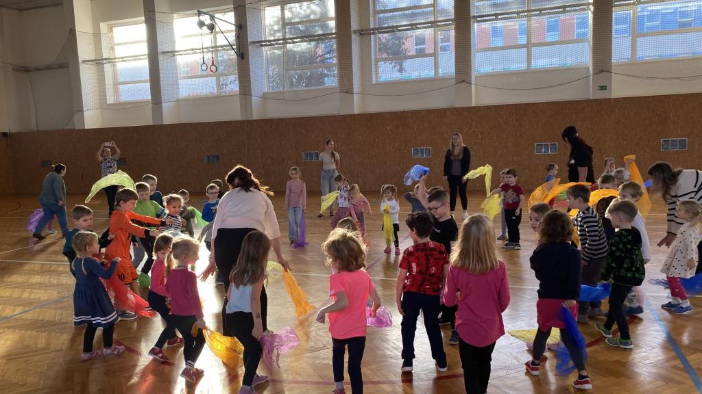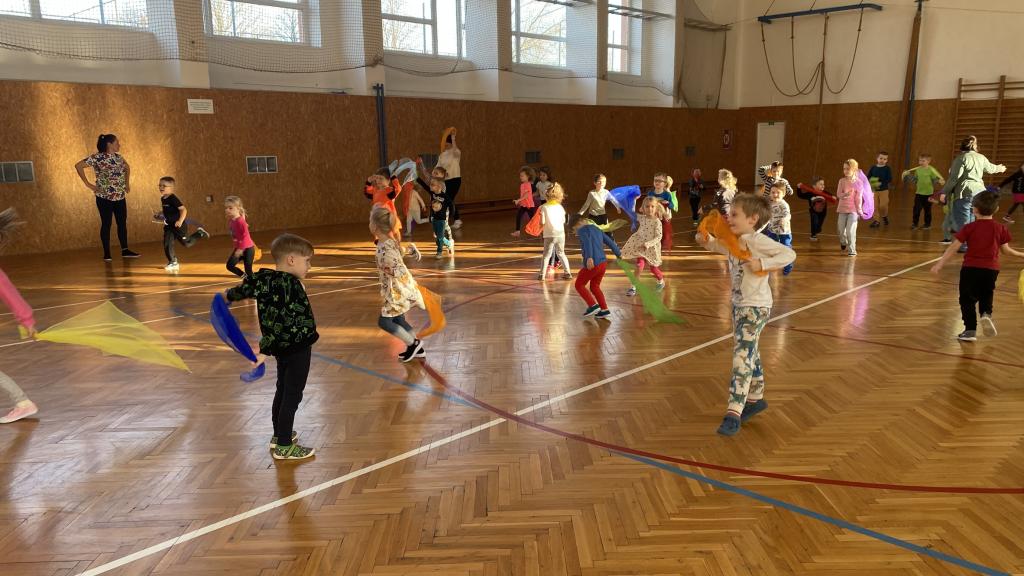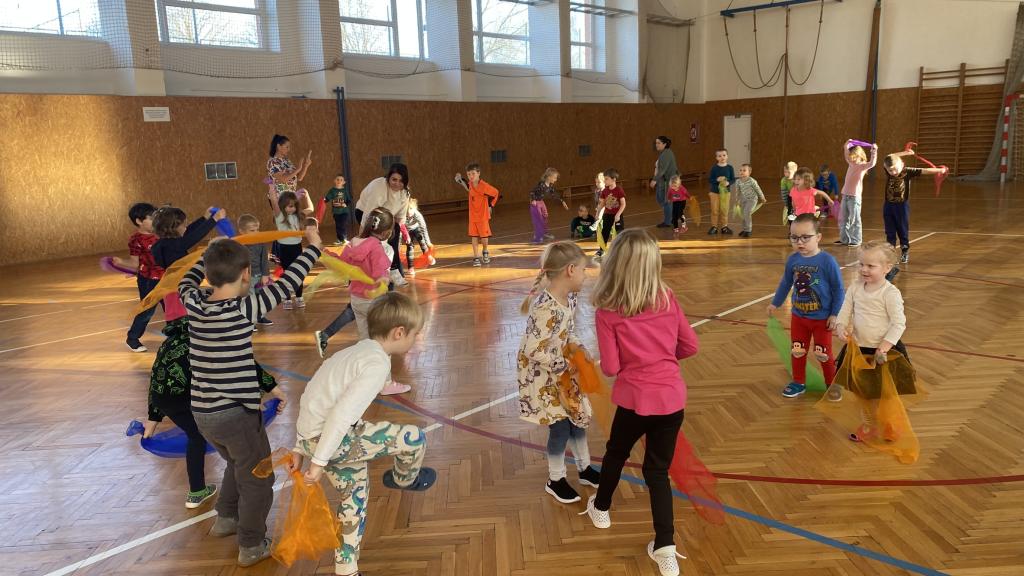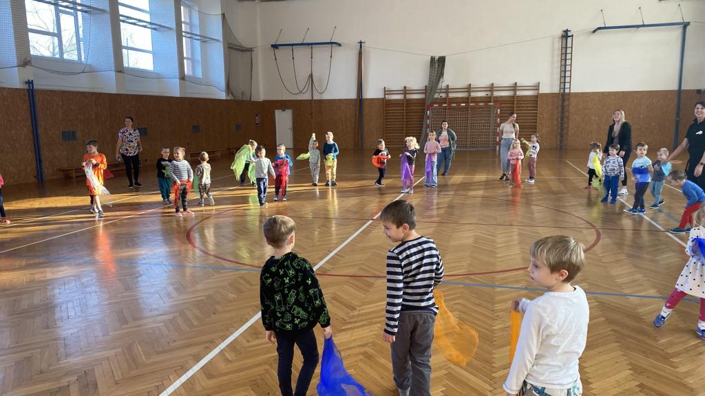 V pátek 14. 11. nás potěšily svoji návštěvou děti z MŠ Budovatelů. Společně jsme se vydali do naší oblíbené tělocvičny, kde nás čekala hodina plná pohybových her motivovaná tematikou Dráčků. Děti si zacvičily s barevnými šátky za doprovodu veselých písniček. Hrály pohybovou hru s tvary, ze kterých skládaly dračí ocásky. Trénovaly svoji obratnost při lezení na žebřinách a houpání na kruzích. Nechyběly ani míčové hry a dostatek volného pohybu. Společné cvičení se nám moc líbilo a už teď se těšíme, až nás mladší kamarádi zase navštíví.