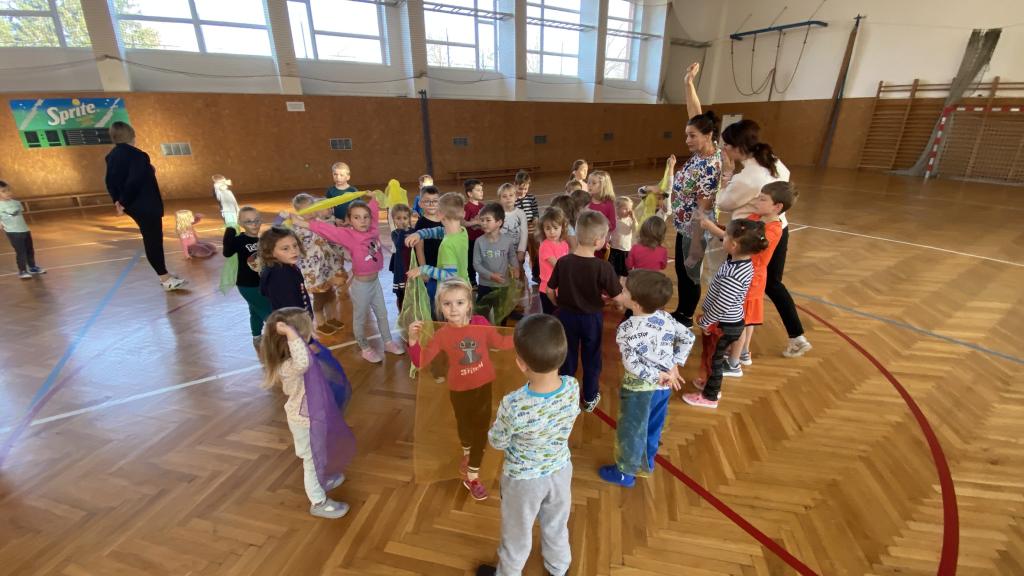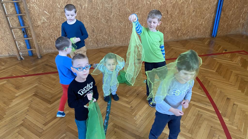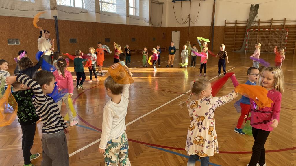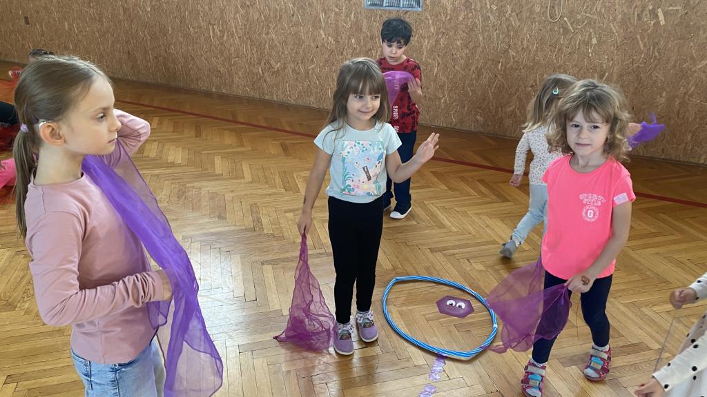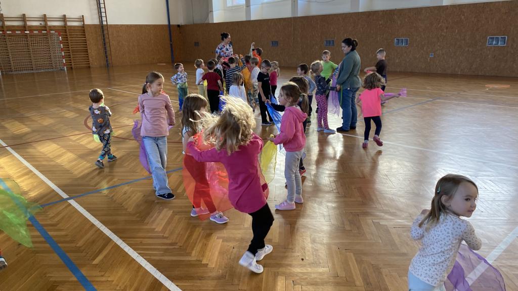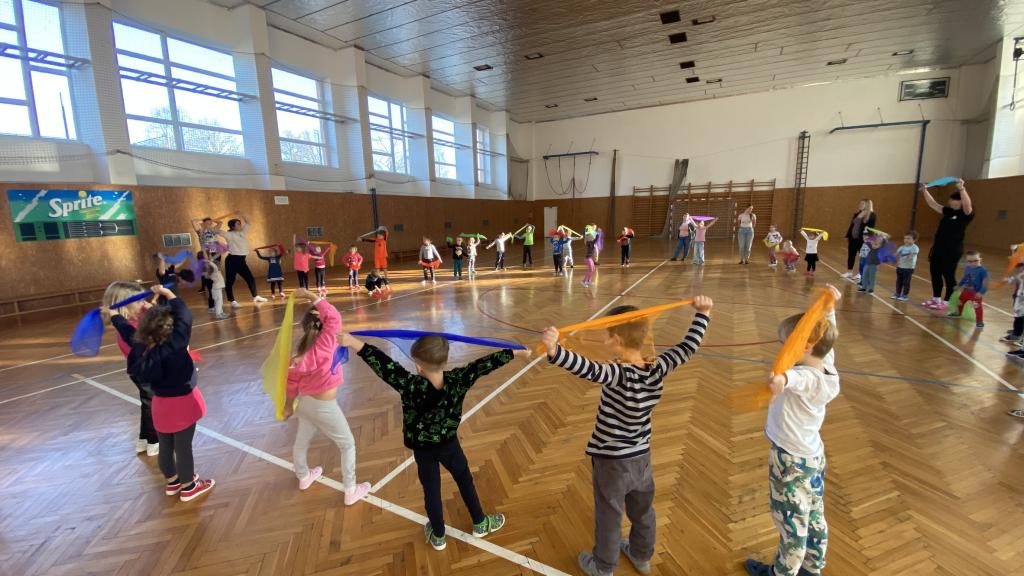 V pátek 14. 11. nás potěšily svoji návštěvou děti z MŠ Budovatelů. Společně jsme se vydali do naší oblíbené tělocvičny, kde nás čekala hodina plná pohybových her motivovaná tematikou Dráčků. Děti si zacvičily s barevnými šátky za doprovodu veselých písniček. Hrály pohybovou hru s tvary, ze kterých skládaly dračí ocásky. Trénovaly svoji obratnost při lezení na žebřinách a houpání na kruzích. Nechyběly ani míčové hry a dostatek volného pohybu. Společné cvičení se nám moc líbilo a už teď se těšíme, až nás mladší kamarádi zase navštíví.