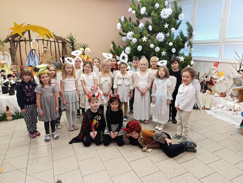 U prvňáčků to dnes vypadalo jako v opravdové pohádce – místo školáků se lavice zaplnily malými čertíky a andílky. O velké zpestření se postarali žáci devátých tříd, kteří k nám přišli převlečení za opravdové čerty, anděly a Mikuláše. Prvňáčci statečně přednesli básničku a ukázali, že si pochvaly od Mikuláše zaslouží. Za statečnost dostali i baliček pln&ya