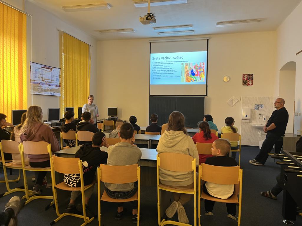 V pátek 26. září jsme si na naší škole připomněli význam nadcházejícího státního svátku – Svátku svatého Václava a Dne české státnosti. V prezentaci se žáci dozvěděli o životě, způsobu vlády a smrti svatého Václava. Vysvětlili jsme si pojem česká státnost a význam tohoto slova v dnešní době. Pak nám bohužel počasí nepřálo a místo plánované procházky s plněním úkolů jsme si museli vystačit se školními chodbami. Přesto se cíl - vyplnění