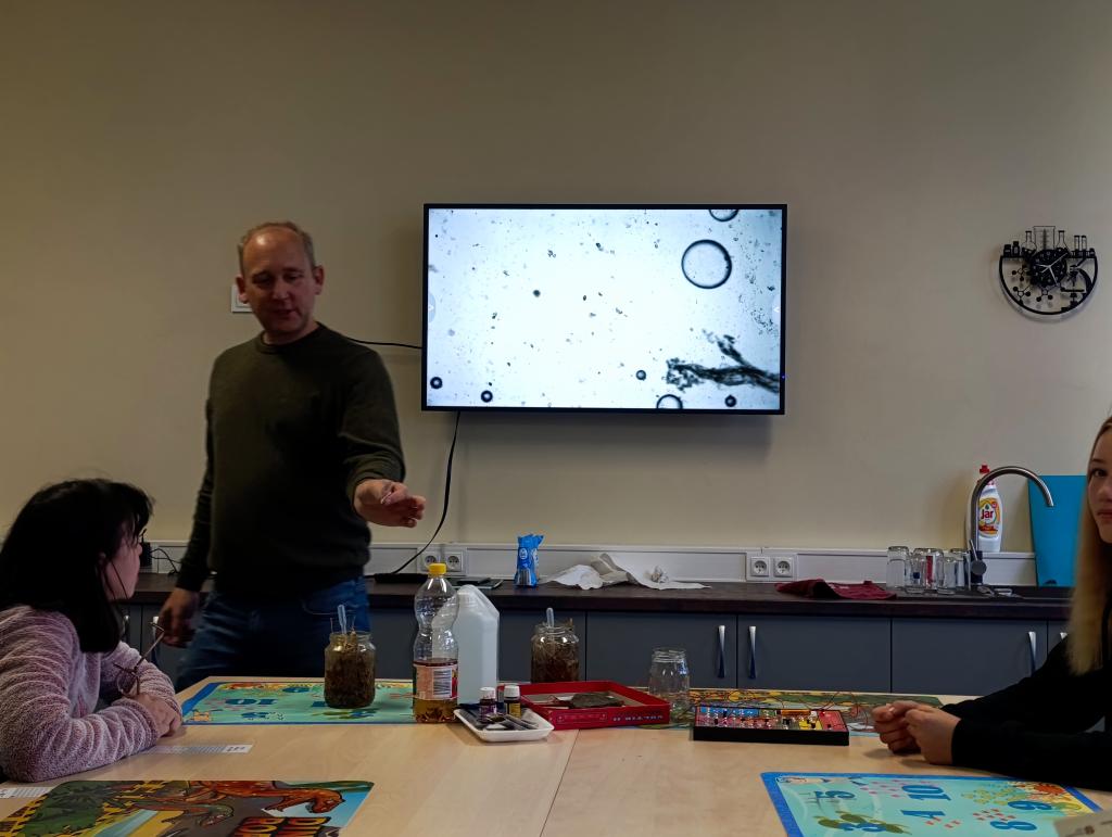 Na závěr si pod mikroskopem prohlíželi senný nálev. Každý z žáků si odebral vlastní vzorek, připravil si ho na sklíčko a pak pozoroval pod mikroskopem mikroorganismy, jako například trepku velkou nebo krásnoočka. Žáci si přednášku velice užili a odnesli si spoustu nových poznatků i zážitků.