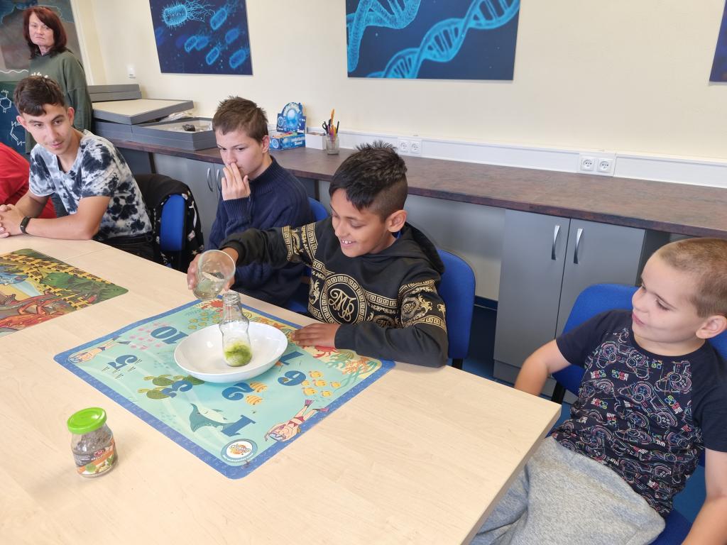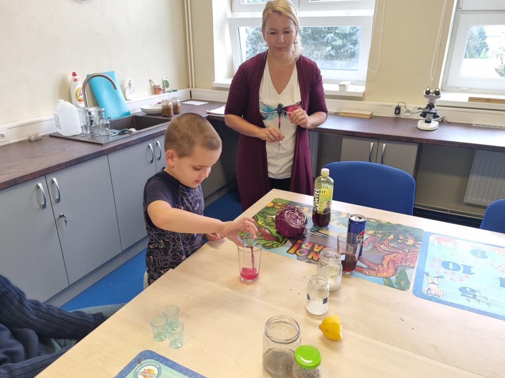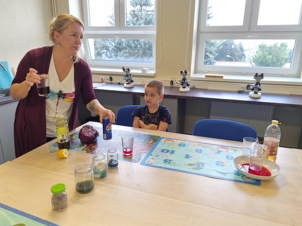Poté zkoumali, jak různé potraviny obarvují vodu. Pozorovali, jak se voda mění podle přidaných surovin – vznikaly zajímavé barvy a efekty.