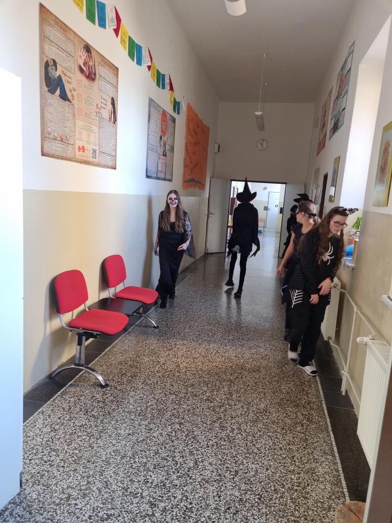 Poslední říjnový den se naše škola proměnila v říši plnou duchů, čarodějnic, kostlivců i upírů. Chodby školy zaplnila strašidla všech podob a velikostí – od klasických masek až po oblíbené filmové hrdiny. Konala se totiž oblíbená oslava Halloweenu, kterou si všichni žáci i učitelé užili naplno. Už od rána panovala ve škole tajemná a veselá atmosféra. Žáci přišli v originálních kostýmech a soutěžili o titul nejstrašidelnější, nejoriginálnější a nejvtipnější masky. Porota měla plné ruce práce, protože nápaditost žáků byla letos opravdu neuvěřitelná. Během dopoledne se konala řada halloweenských her a soutěží – například Chytání pavouků, Závody na košťatech, Nejlepší zombie tanec nebo napínavý Závod nejrychlejšího pavouka. Ve třídách si žáci vyráběli papírové netopýry, strašidla a povídali si o původu tohoto svátku.