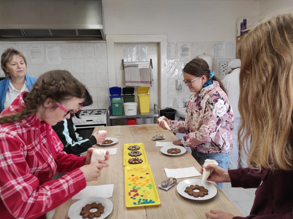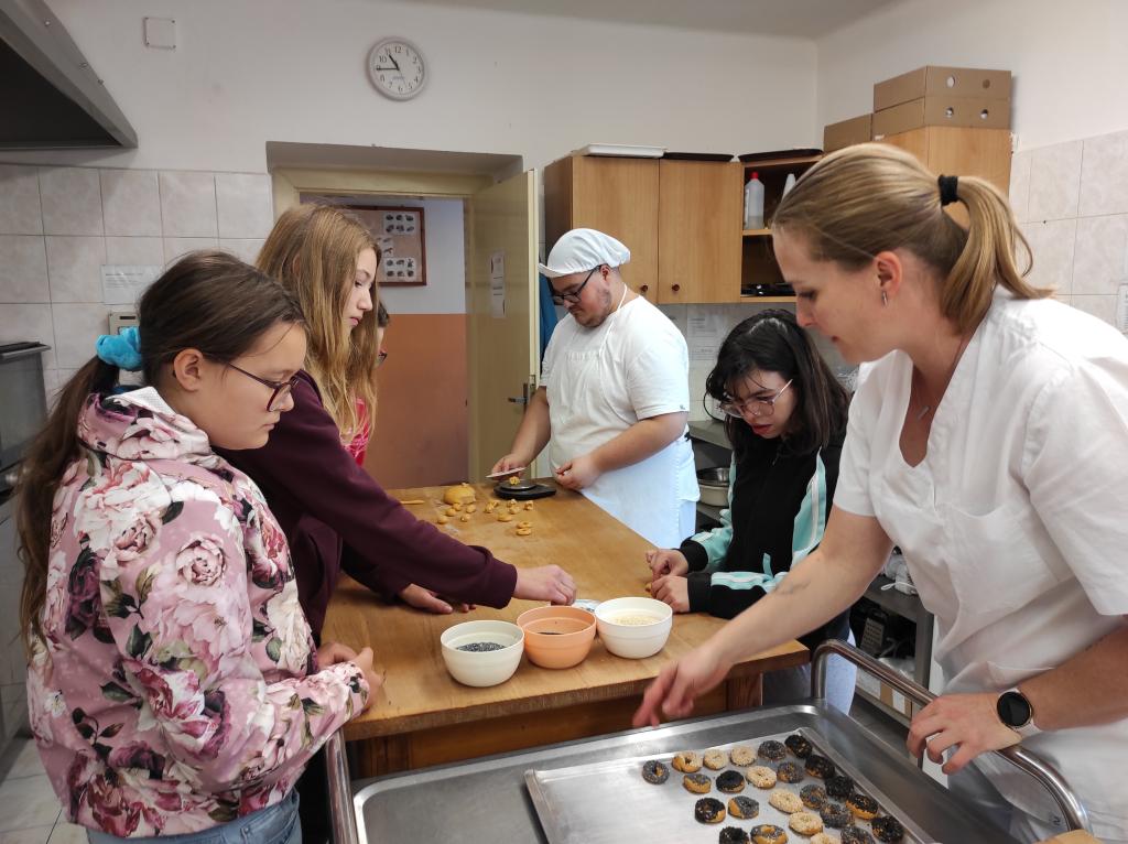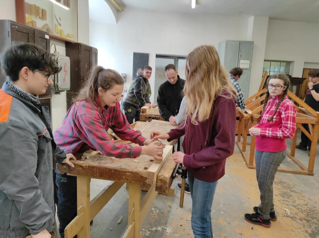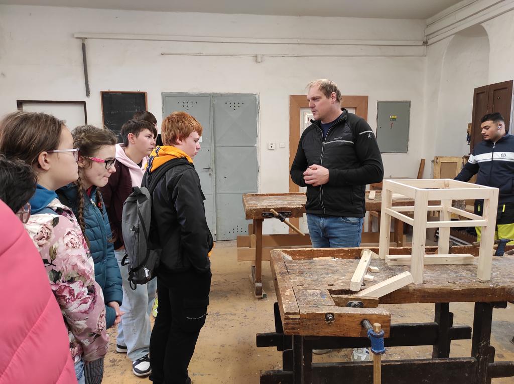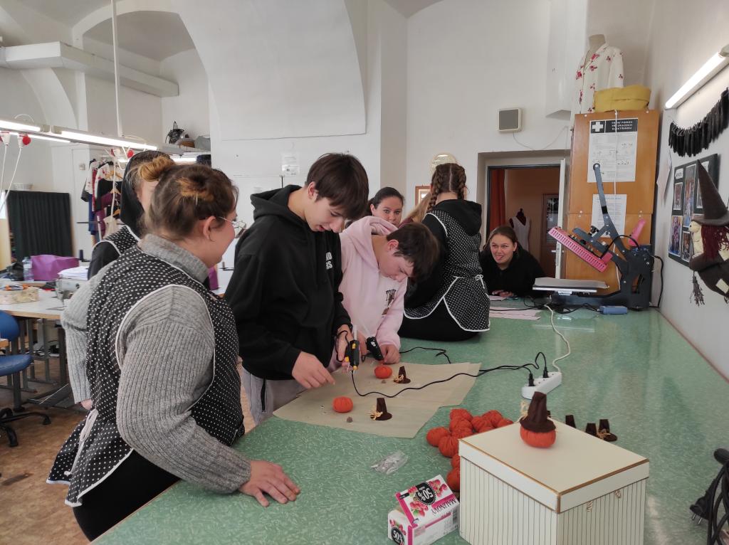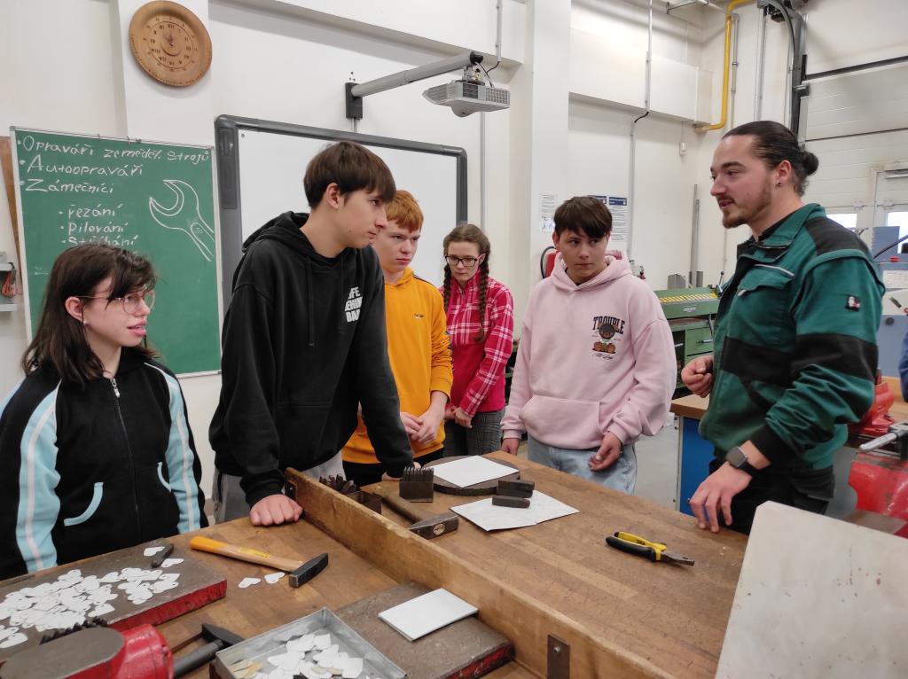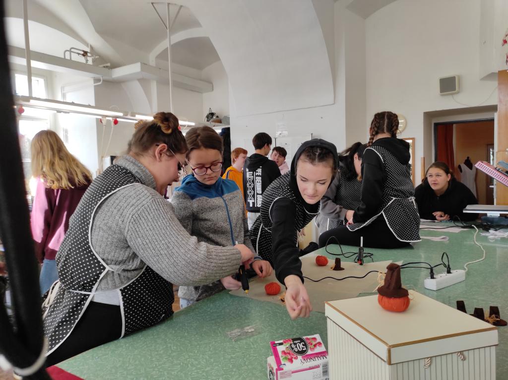 Dne 4. 11. se žáci ze ZŠ Poličská již po několikáté zúčastnili projektového dne v Odborném učilišti Chroustovice, kde si během dopoledne vyzkoušeli nejrůznější řemesla a obory, které škola nabízí. Celý den se nesl ve znamení tvořivosti a dobré nálady. První zastávkou byl obor módní dekoratér, kde si žáci vyrobili vlastního „dýňového skřítka“, zkusili si práci se šicím strojem a mohli si vyžehlit stuhu. U pečovatelů si měli možnost vyzkoušet přebalování figuríny miminka a zájemcům byl změřen krevní tlak – všichni tak nahlédli do péče o druhé z trochu jiného úhlu. Velký zájem vzbudila i návštěva truhlářů, zedníků a dřevařů. Zde si žáci vyzkoušeli práci se dřevem a stavbu chodníku z dlažebních kostek. Na památku si každý odnesl krásný dřevěný stojánek na mobil. Příjemná vůně nás poté zavedla ke kuchařům a cukrářům. Žáci si vyváleli a vytvarovali preclíky, ozdobili perníčky a jednohubky, které si následně s chutí snědli. Nechyběla ani návštěva chovatelů, kde na nás čekali tři krásní hnědouši. Další zastávkou byli aranžéři, kteří žákům umožnili vytvořit si květinovou dekoraci podle vlastní fantazie. Každý si svoji květinu mohl odnést domů. Den zakončila návštěva autoopravářů a zámečníků – zde si žáci vyzkoušeli opravu propíchnuté duše, výměnu kol u auta a do kovového srdce si vyťukali své monogramy. Celým programem nás provázely zábavné soutěže. Po dni plném aktivit jsme se vraceli příjemně unavení, ale bohatší o nové zážitky, vědomosti i dovednosti – a také s plnými taškami vlastních výrobků.