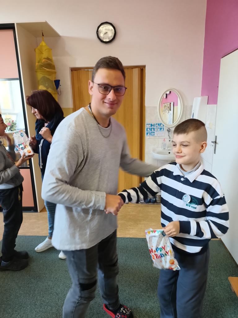 V pátek 14. 11. oslavil Tymurek, žák III. třídy, své 10. narozeniny. Do školy přinesl svým spolužákům dort a balíčky se sladkostmi. Všichni spolužáci s ním rádi jeho narozeniny oslavili, popřáli mu a přiťukli si dětským šampaňským. Tymurkovi přejeme hlavně hodně zdraví a štěstí a jeho mamince děkujeme za dort a balíčky.