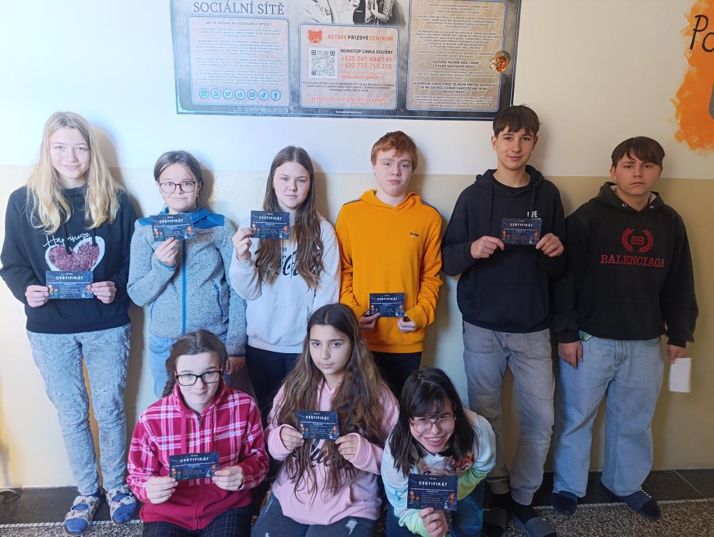 Dne 6. 11. 2025 žáci naší školy byli seznámeni s aplikací Digitální gramotnost od společnosti Glitr s.r.o. pod vedením lektorky Ing. Natálie Parlagi. Po úvodním vysvětlení se vydali po škole hledat QR kódy, podle instrukcí uvedených v aplikaci. Každý nalezený a naskenovaný kód je posunul o krok dál v plnění digitálních úkolů. Po úspěšném splnění celé aktivity získali žáci certifikát. Na závěr proběhla společná zpětná vazba, ve které žáci zhodnotili průběh i přínos programu.