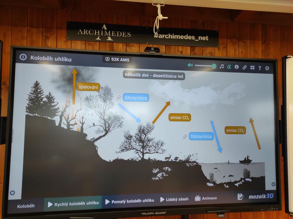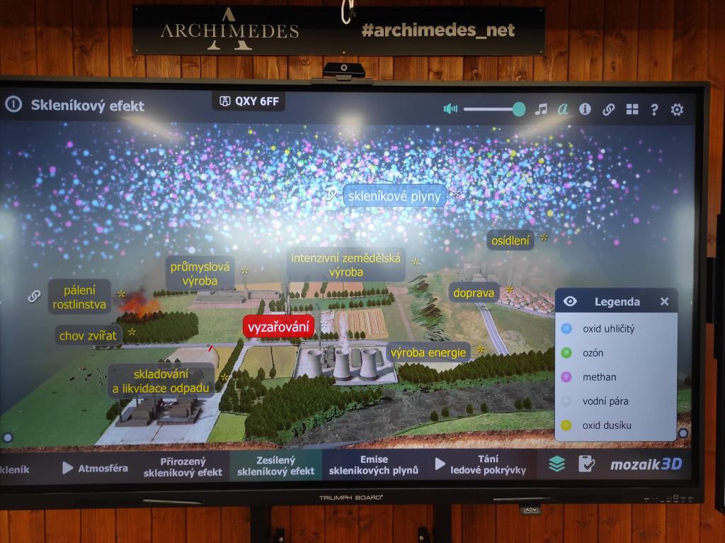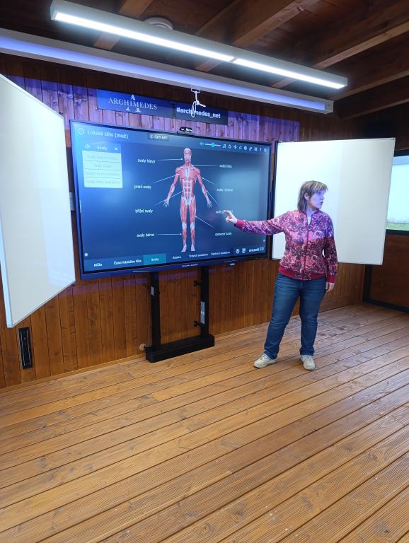 Dne 11. 11. 2025 jsme se žáky přesunuli s výukou do venkovní učebny Archimedes, která je součástí sítě ekologických a interaktivních učeben. V rámci výukového programu jsme si prohlédli model lidského těla, prozkoumali vývojová stádia plazů, vysvětlili si, co způsobuje skleníkový efekt a proč je pro nás důležitý.