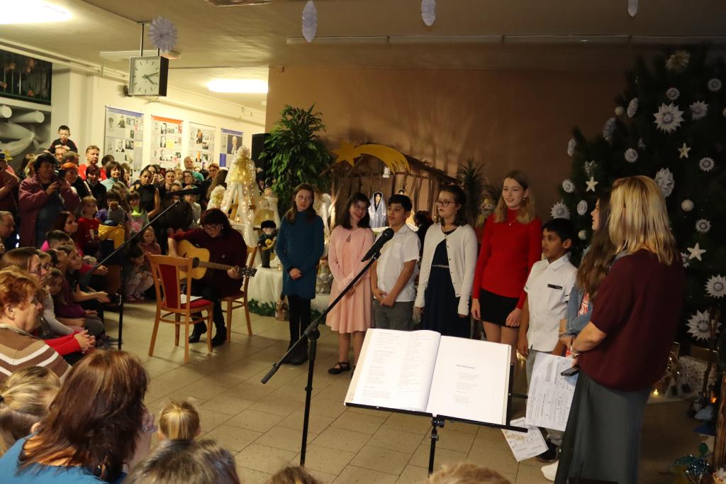 Nechyběla ani Andělská pošta, kde si ti nejmenší mohli napsat dopis Ježíškovi, a také tradiční návštěva Mikuláše, andělů a čertů. Vrcholným okamžikem se stalo očekávané rozsvícení vánočního stromečku ve vestibulu školy. Vestibulu školy zdobí i školní betlém, který bude ke zhlédnutí po celý prosinec.