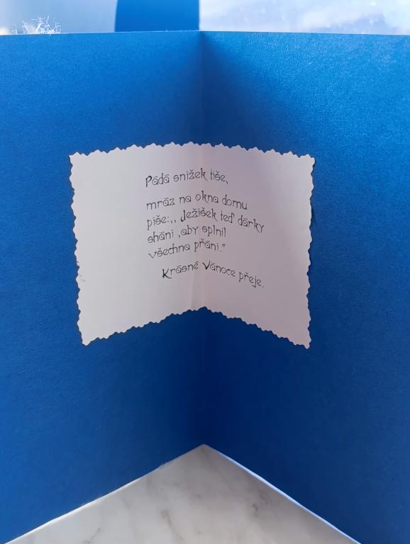 A jak už jsme z předešlých dnů zvyklí, i toto zadání bylo jednoznačné – vyrobit vánoční přání pro někoho blízkého. Žáci se pustili do tvoření s velkým nadšením. Výsledkem byla krásná osobní přání, která jistě udělají radost rodičům, prarodičům nebo kamarádům.