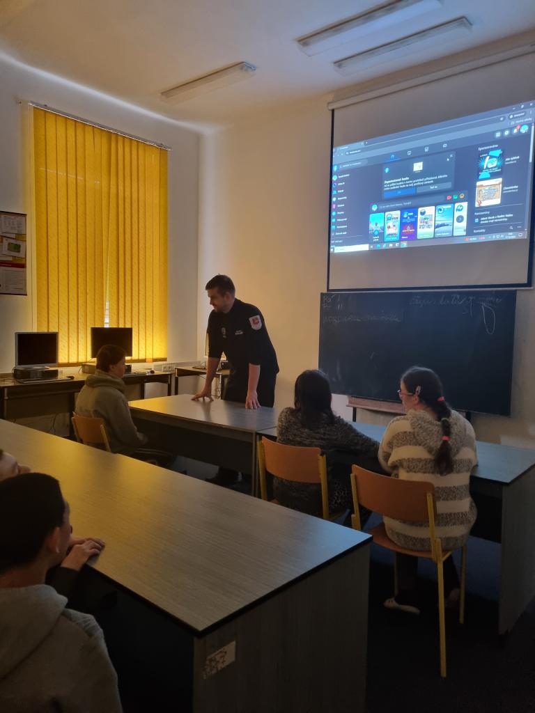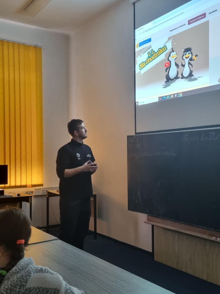 Dne 17. 12. 2025 proběhla na naší škole beseda o správném chování na komunikacích, kterou uspořádala Městská policie Hlinsko. Přednášku vedli strážníci Martin Severýn a Tomáš Sochor.