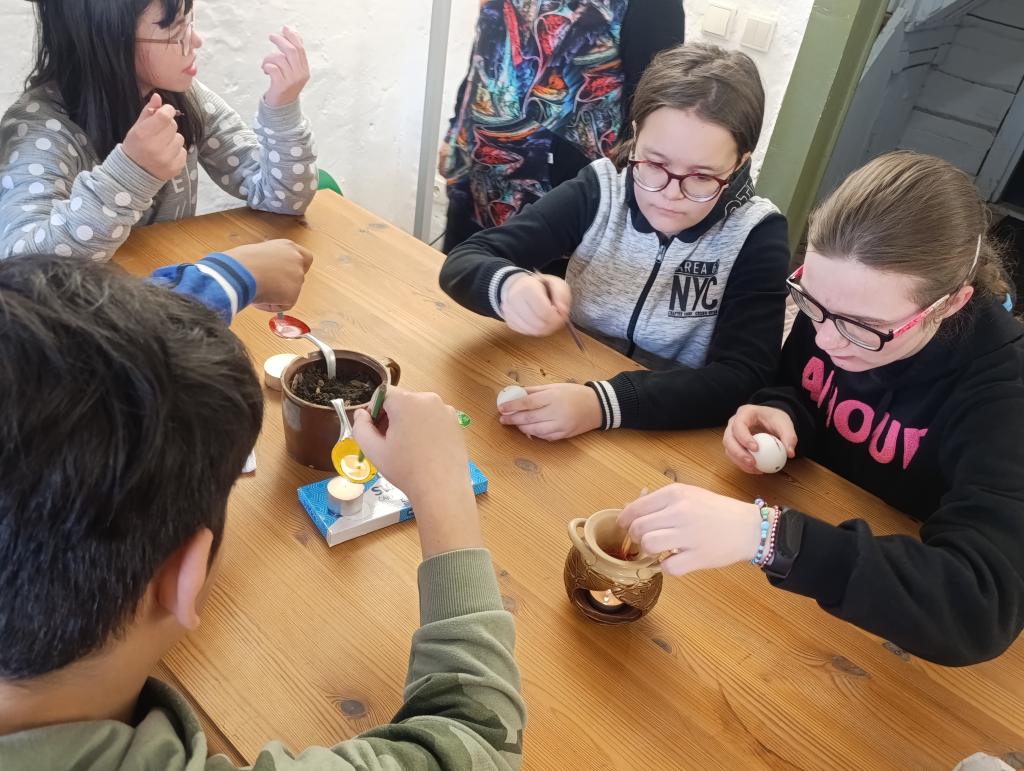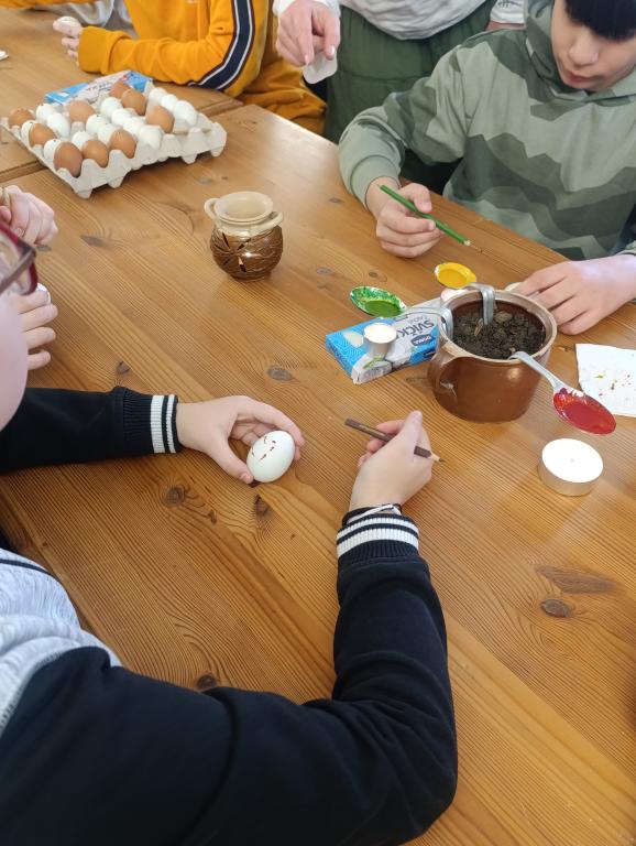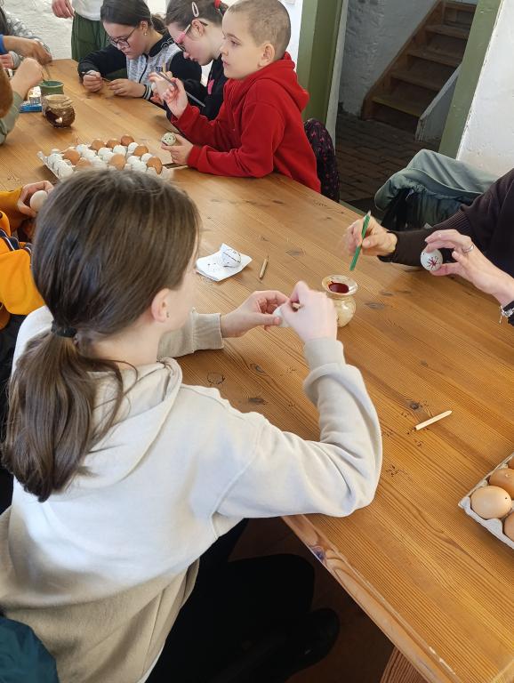 Dne 17. 3. 2026 se žáci naší školy zúčastnili zajímavého programu zaměřený na tradice a zvyky spojené s Velikonocemi. Hned na úvod si žáci vyzkoušeli práci v tvořivé dílničce, kterou vedly Andrea Svobodová a Vendula Tesařová. Pod jejich vedením si každý namaloval vyfouklé vajíčko voskovou technikou. Žáci se dozvěděli, jaké vzory se při zdobení kraslic používají a jak se liší v jednotlivých regionech. Další část exkurze patřila poutavému výkladu, kterým nás provedl Mgr. Pavel Bulena. Ten žákům přiblížil význam svátků Velikonoc nejen z křesťanského hlediska, ale také z pohledu lidových tradic. Vysvětlil například, proč se plete pomlázka a proč se s ní na Velikonoční pondělí ženy „šlehají“, co symbolizuje darování vajíčka a jaký význam měl tento dar v minulosti – často nesl i osobní vzkaz obdarovanému. Žáci se také dozvěděli, jakými různými technikami se vajíčka zdobila a jaké materiály se k tomu využívaly. Nechybělo ani povídání o tradičním velikonočním pečivu. Žákům bylo vysvětleno proč se peče mazanec, beránek či jidáše a jaký mají tyto pokrmy symbolický význam. Exkurze byla pro všechny velmi přínosná a obohatila žáky o nové poznatky z oblasti lidových tradic. Zároveň jim umožnila prožít velikonoční zvyky nejen teoreticky, ale i prakticky.