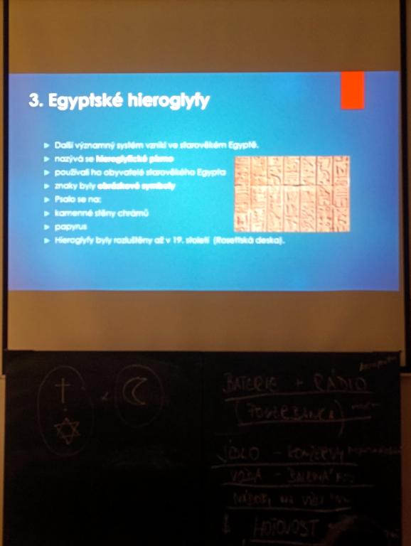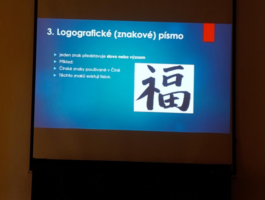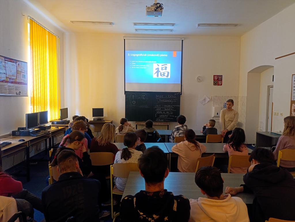 Březen je měsíc, kdy si připomínáme význam knih a internetu. Kniha ani internet by nemohly vzniknout bez písma. A tak si žáci naší školy prezentací připomněli vznik a vývoj písma. Novou informací bylo i to, že ne všechna písma označují jednotlivé hlásky, ale jsou i druhy písma, kdy znaky označují slabiky nebo přímo slova, hebrejské písmo má znaky pro souhlásky a samohlásky se doplňují až při čtení. Následně si žáci vybrali znak z čínského písma, výtvarně ho ztvárnili a z výtvorů vznikla nástěnka, která jim celý měsíc připomíná, proč je březen měsícem knihy a internetu.