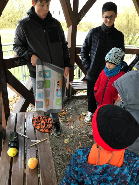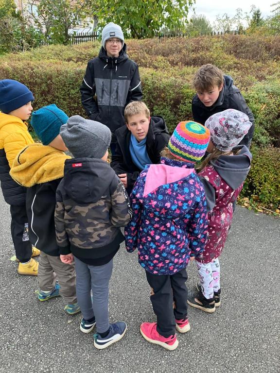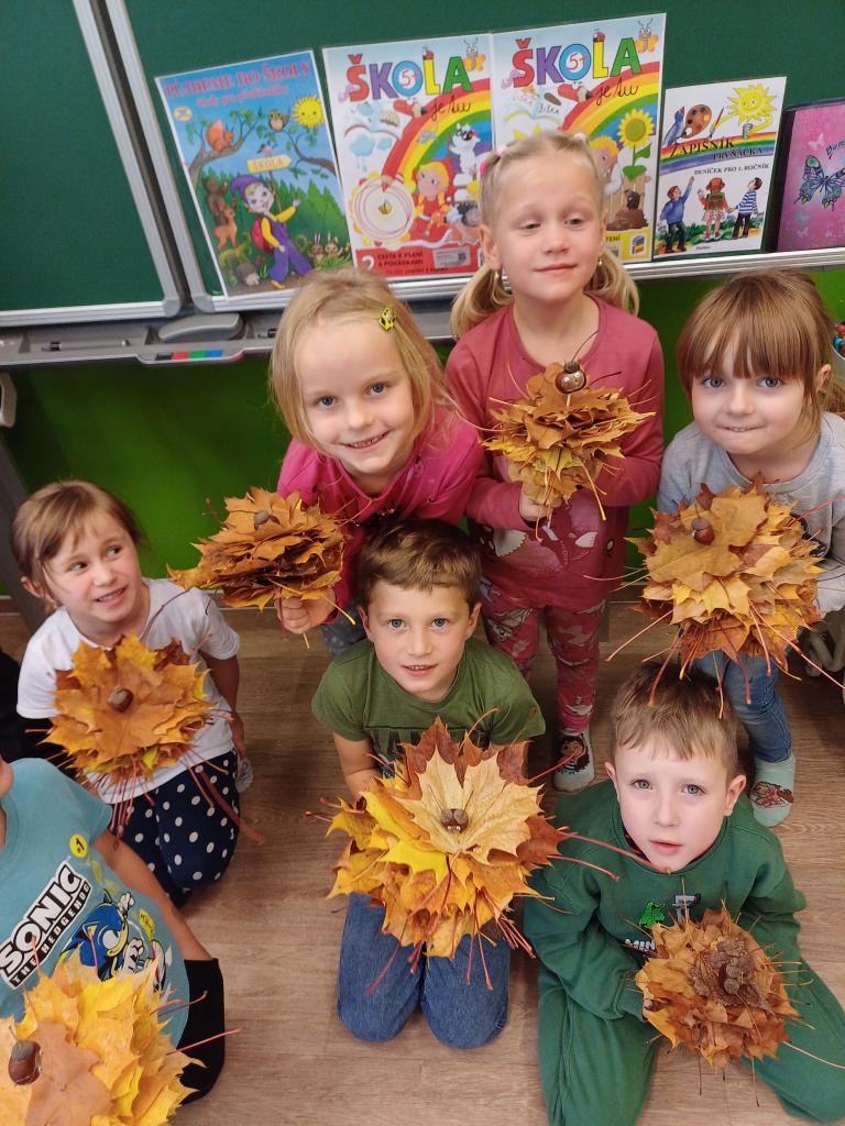 Po úspěšném dokončení všech úkolů si děti společně s osmáky vyrobily vlastního skřítka z podzimního listí. Tvoření děti moc bavilo a výtvory se opravdu povedly. Celé dopoledne probíhalo ve velmi přátelské a pohodové atmosféře. Děti si nejen zasoutěžily a naučily se něco nového, ale hlavně si užily společný čas se svými staršími patrony. Velké poděkování patří paní učitelce Heleně Ročňákové a žákům osmé třídy za skvělou organizaci a laskavý přístup k dětem.