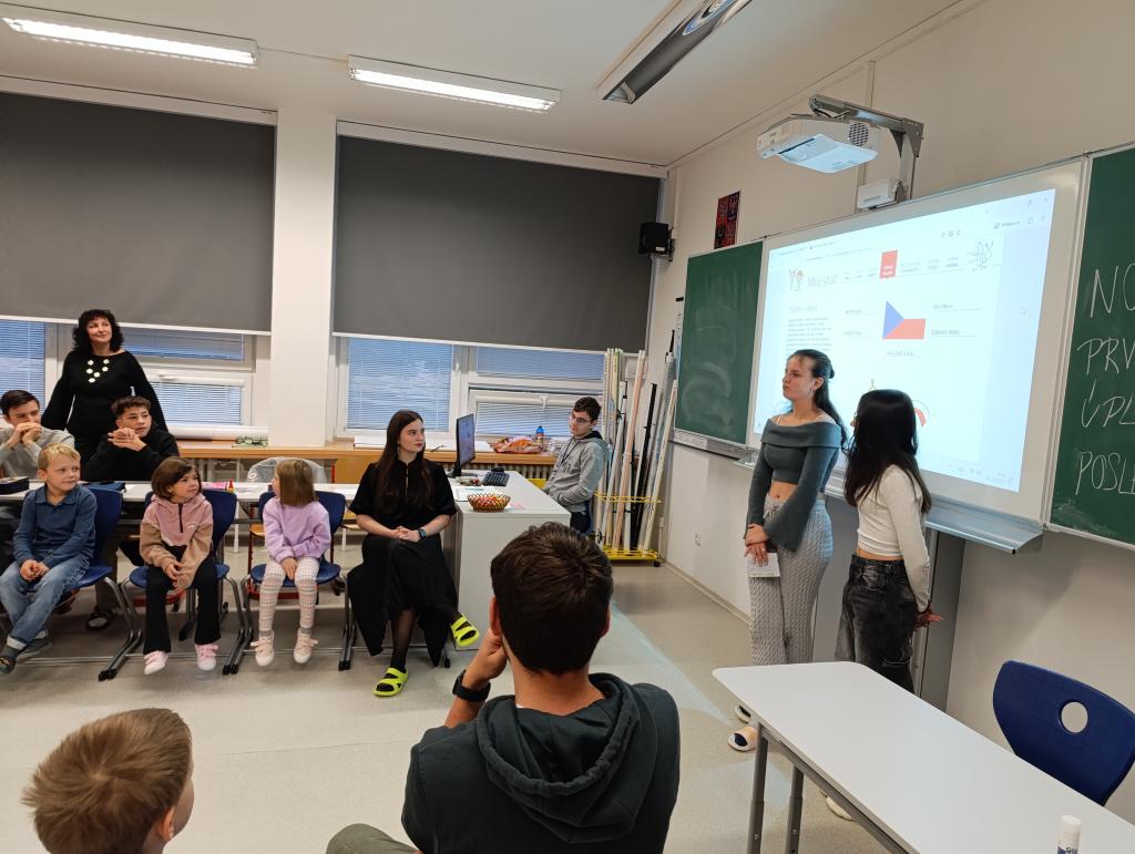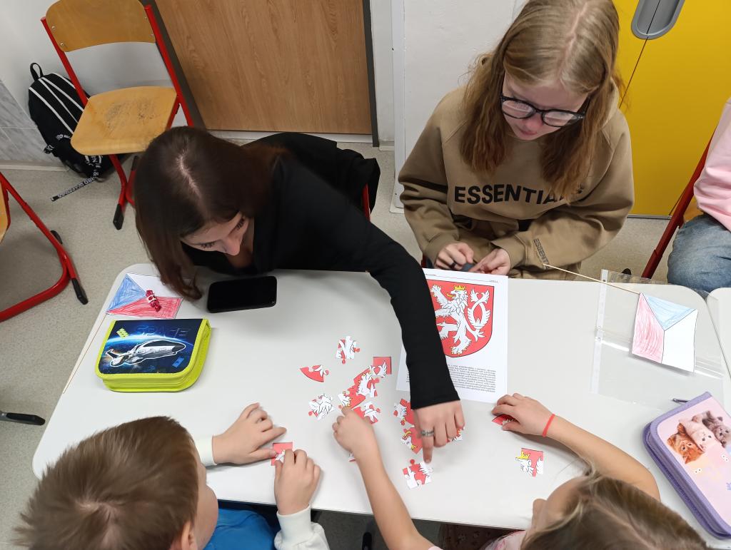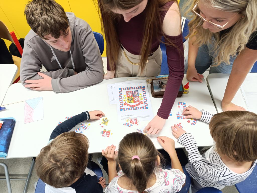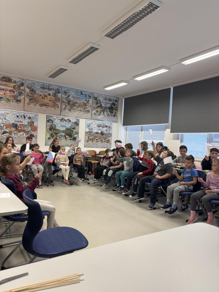 V pátek 24. 10. si pro nás naši patroni pod dohledem p. uč. Zdeny Šiklové připravili dvě vyučovací hodiny, které byly zaměřené nejen na nadcházejí statní svátek 28. října – Den vzniku samostatného Českoslovenka, kde se děti krátce seznámily s historií, ale i na seznámení se se státními symboly a jejich významy.