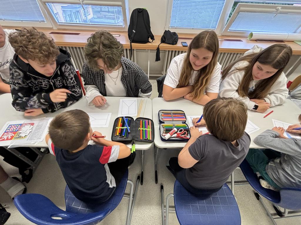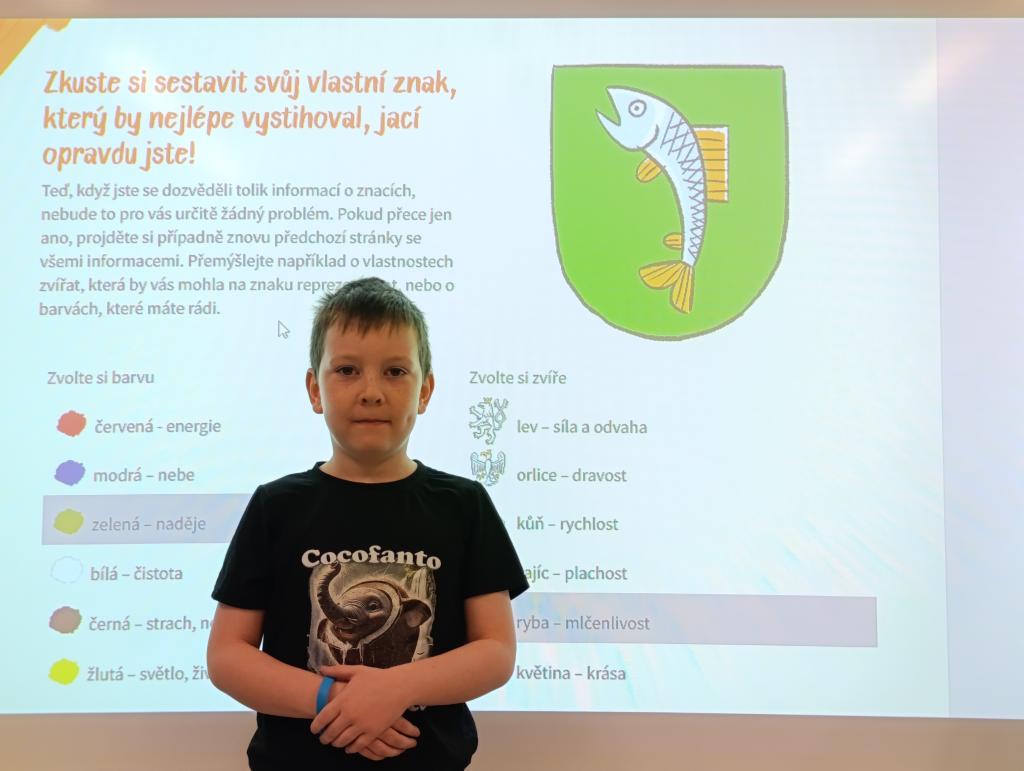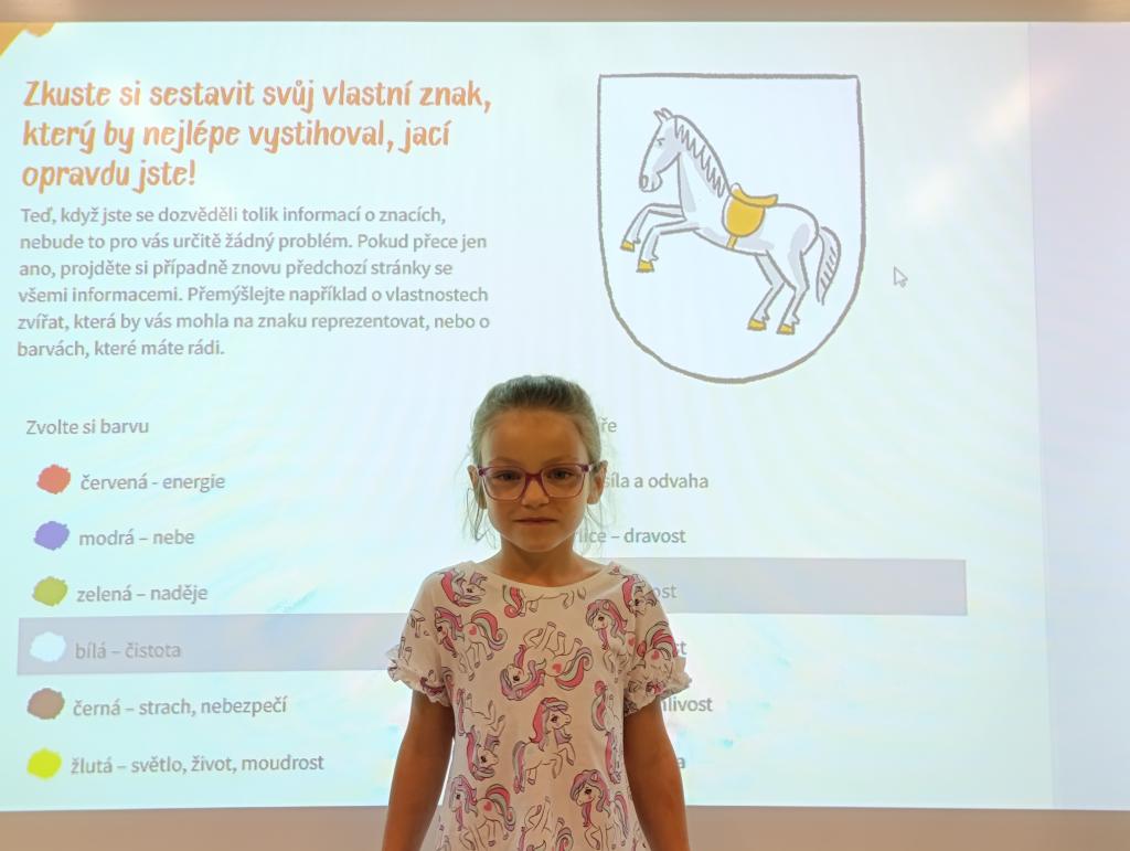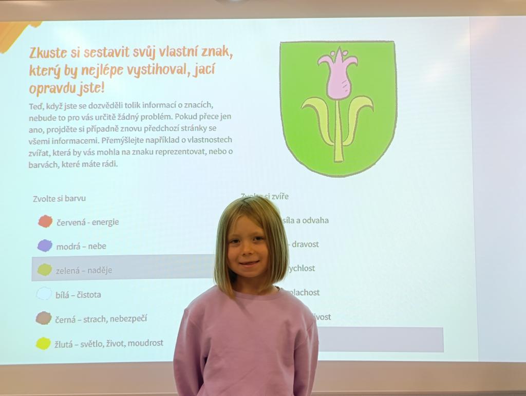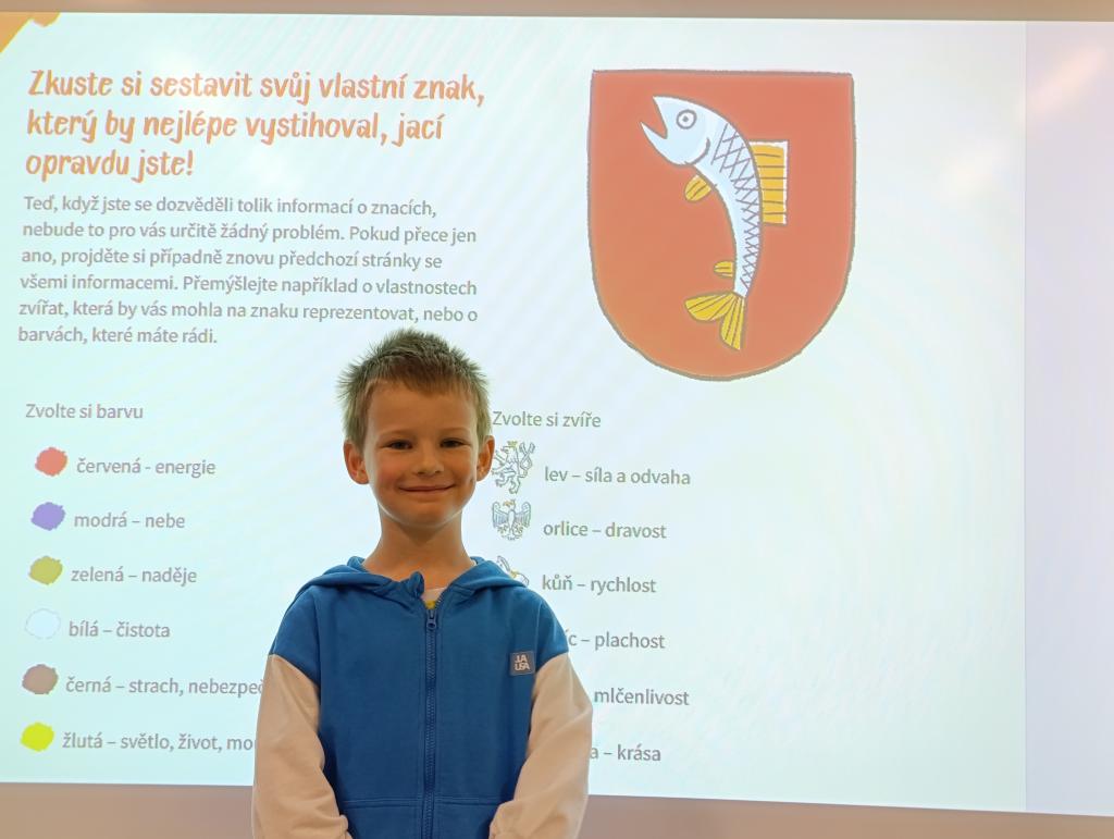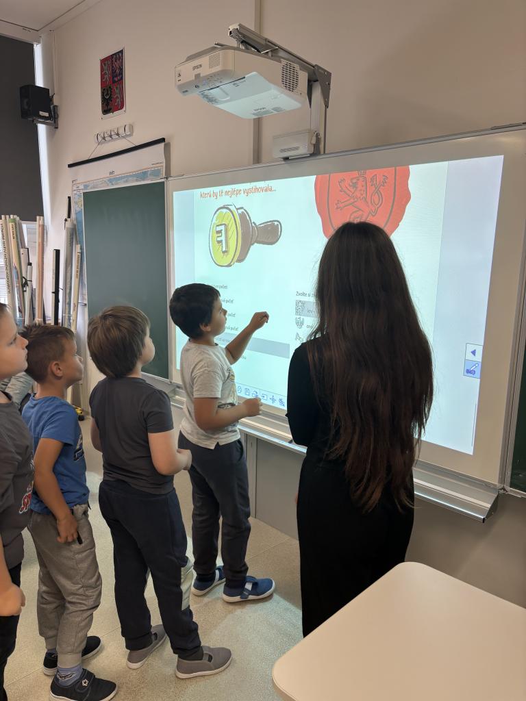 Prvňáci pracovali s interaktivní tabulí, kdy si navrzhovali jslastní malý znak, rozeznávali a určovali rozmístění barev a symbolů na velkém státním znaku, zpívali hymnu, skládali puzzle (velký a malý státní znak, standarta, vlajka, pečeť), vyrobili si vlaječku, apod.
