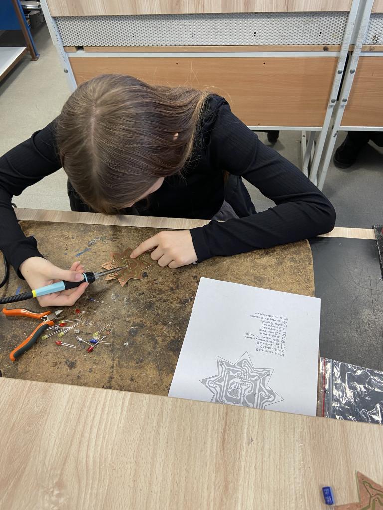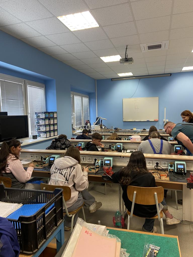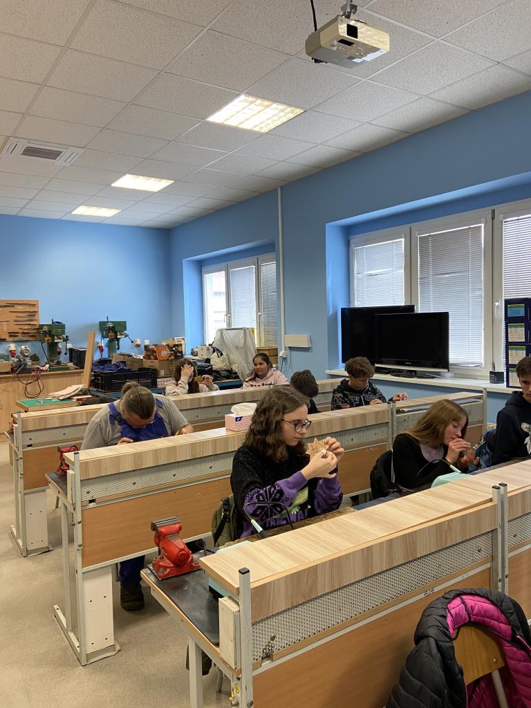 Ve středu 22. října se vybraní žáci třídy IX. A zúčastnili Soutěže v technických dovednostech na Střední průmyslové škole v Chrudimi. Do soutěže se zapojili nejen chlapci, ale také děvčata, která projevila stejné nadšení pro techniku a tvořivost. Po přivítání byli žáci provedeni budovou školy a seznámili se s nabídkou studijních oborů, které škola nabízí pro pokračování ve studiu po základní škole. Následně se přesunuli do dílen, kde si vyzkoušeli praktickou část soutěže – výrobu svítící hvězdy s elektronickými součástkami. Úkolem bylo správně připájet jednotlivé prvky do plastové šablony hvězdy. I když někteří drželi páječku v ruce poprvé, všem se podařilo úkol úspěšně splnit a hvězdy se po zapojení rozsvítily. Žáci tak prokázali svou zručnost, trpělivost a chuť učit se nové věci. Vyrobené hvězdy nyní zůstanou na SPŠ Chrudim, kde budou odborně vyhodnoceny. Po vyhodnocení budou výrobky doručeny zpět do naší školy a nejlepší práce budou odměněny.