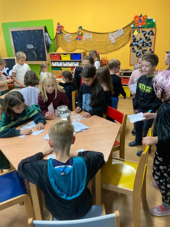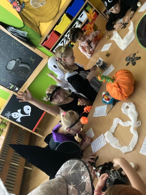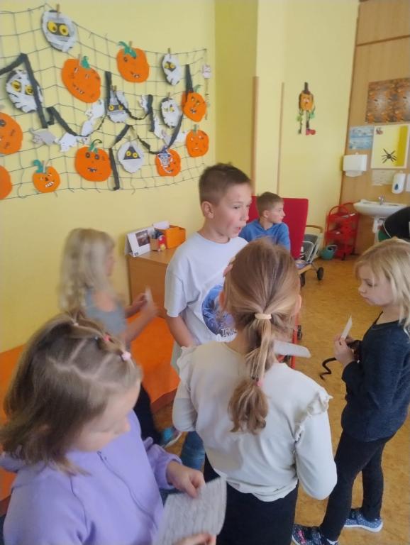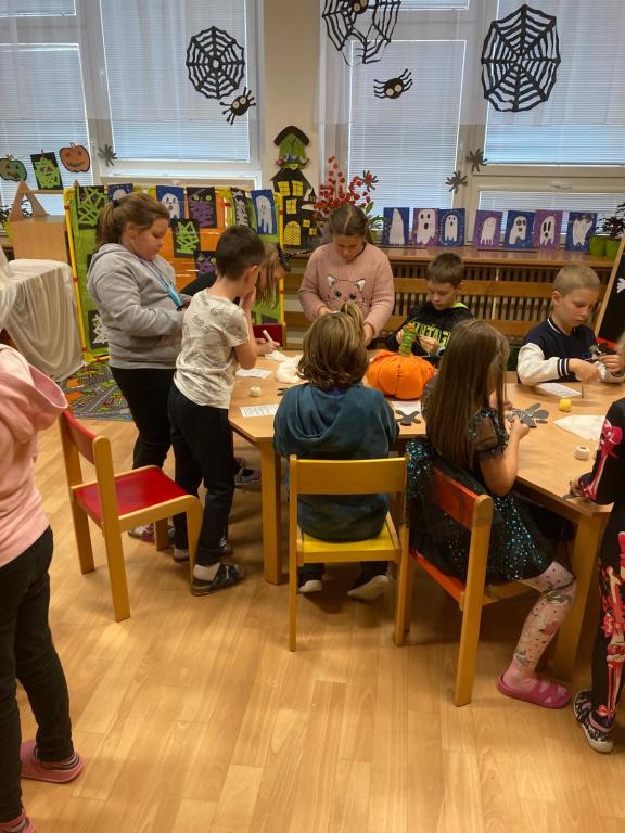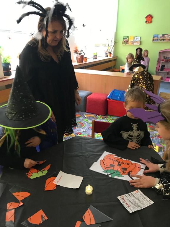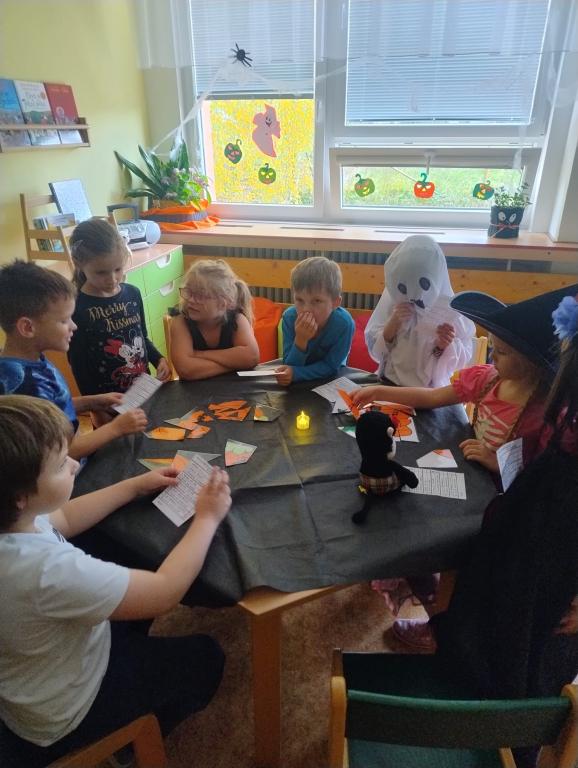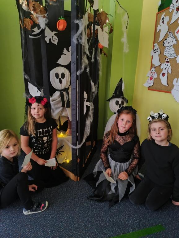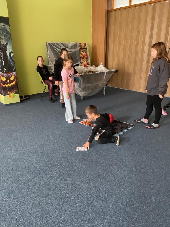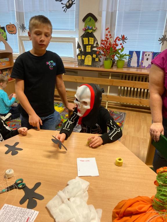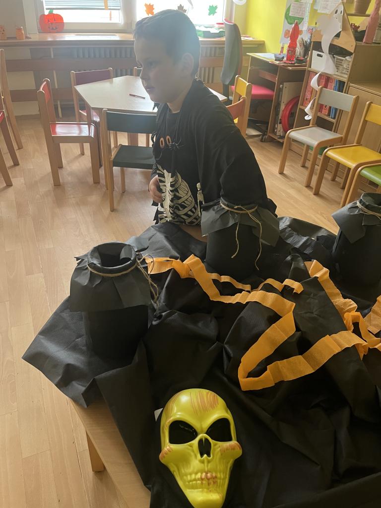 V herně číslo 1 se děti ocitly v " ZÁHROBÍ", čekal na ně nelehký úkol, kde musely vrátit kostlivci všechny kosti tam, kam patří. Na stole tam na ně čekali panáčci teprve v rozkladu, a co jiného, než z nich udělat mumie! Za odměnu si každý tuhle papírovou mumii odnesl domů.