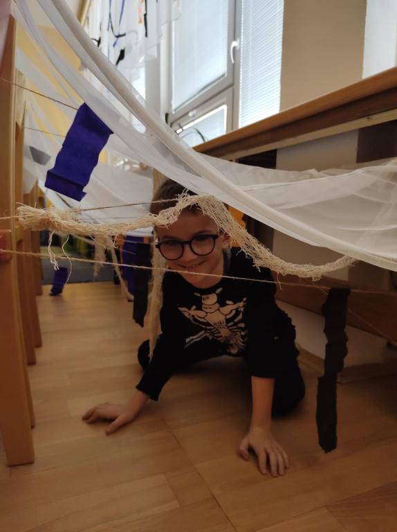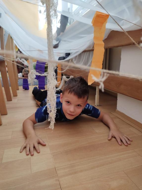Herna číslo 2 byla propletená pavučinou. Aby se každé strašidlo, mohlo dostat dál, muselo se vší silou pod všemi těmi pavučinami soukat jako had. Nakonec jim i snad trocha těch malých pavoučků, přinesla štěstí na další úkoly.