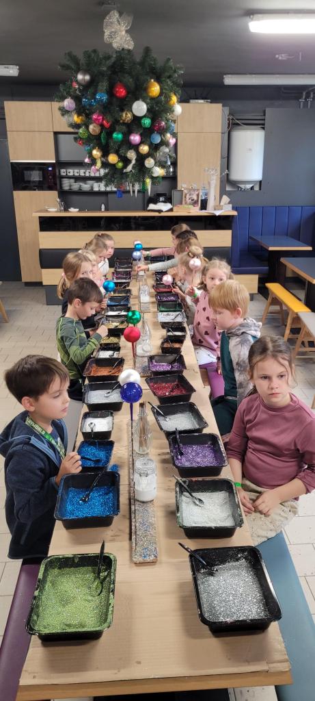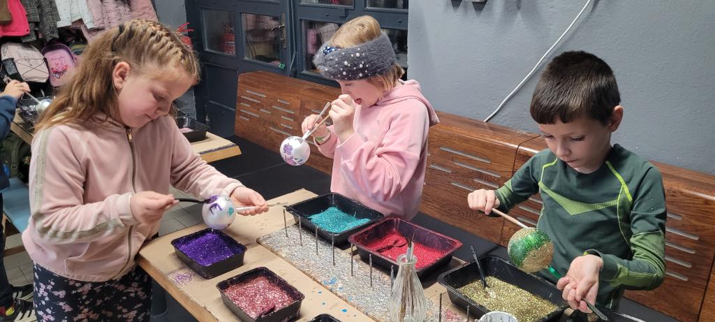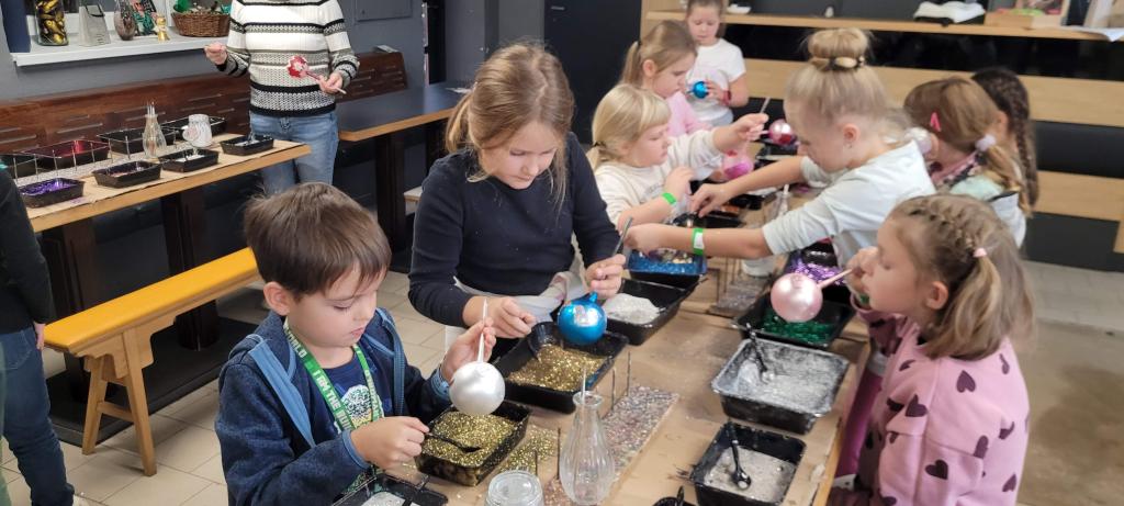 A protože jsme nechtěli zůstat pozadu, dostali jsme možnost ozdobit si vlastní kouli. Třpytky byly rázem úplně všude – na stole, na rukou, na oblečení, ve vlasech i na botách. Ale výsledek stál za to. Každá ozdoba byla originální a jedinečná a děti nadšené. Z exkurze jsme si odnesli nejen krásné ozdoby, ale i trošku vánoční nálady a nezničitelný třpytivý lesk, který nám vydrží ještě dlouho. Všem můžeme návštěvu jen a jen doporučit.
