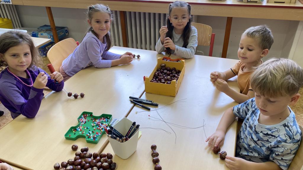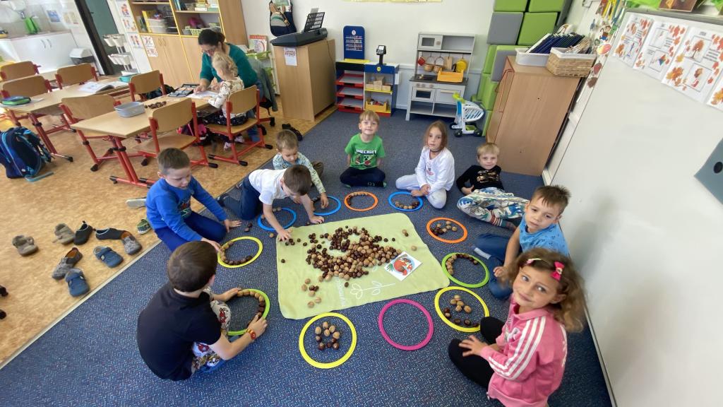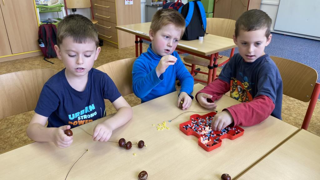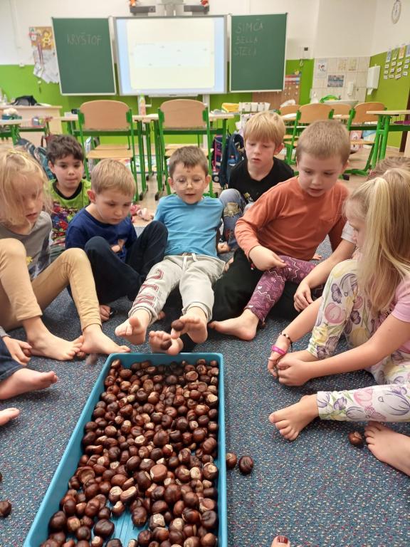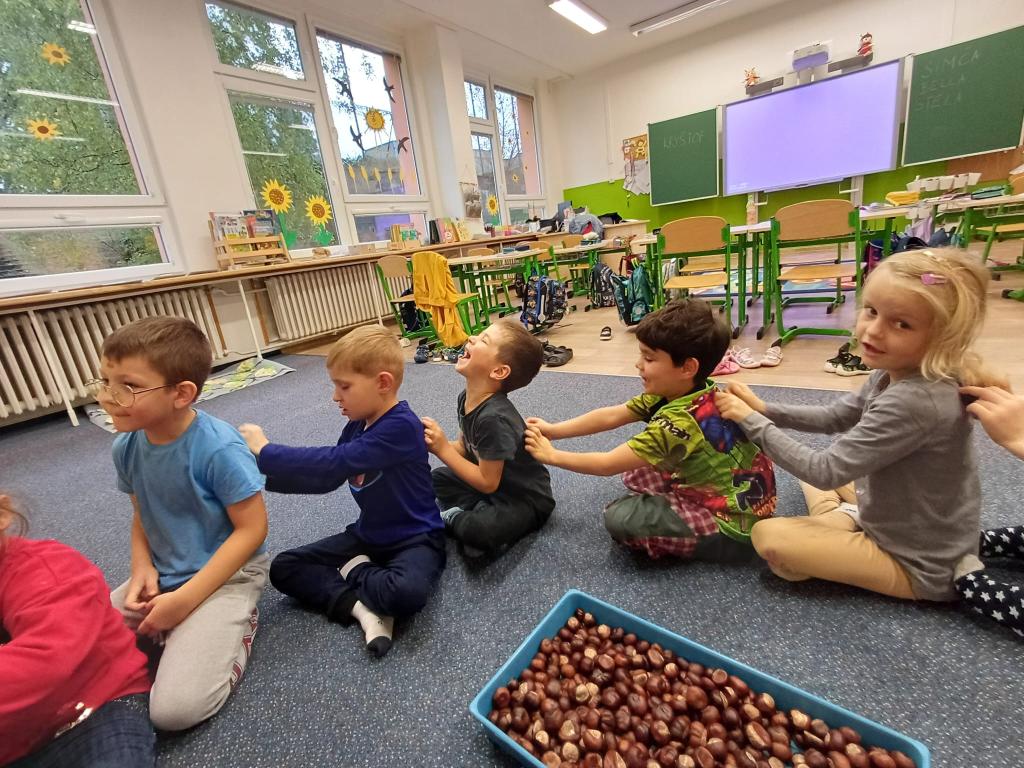 Podzimní dny přinesly mnoho námětů na hravé aktivity v přípravných třídách. Během rozmanitých činností se děti dozvídaly zajímavosti ze světa zvířat a přírody. V blízkém okolí školy poznávaly stromy, keře a podzimní plody. Ve třídě tvořily, zpívaly, četly pomocí obrázků, pilně plnily úkoly v pracovních sešitech a hrály veselé hry. Z jednotlivých činností si děti vyzkoušely také tvoření z kaštanů, frotáž listů, obtiskování ovoce či výrobu pestrobarevných dráčků. Podzimní aktivity se nám všem moc líbily. Děti si za své snažení zaslouží velkou pochvalu!