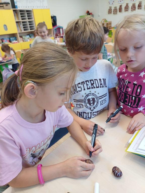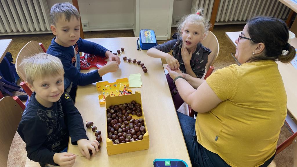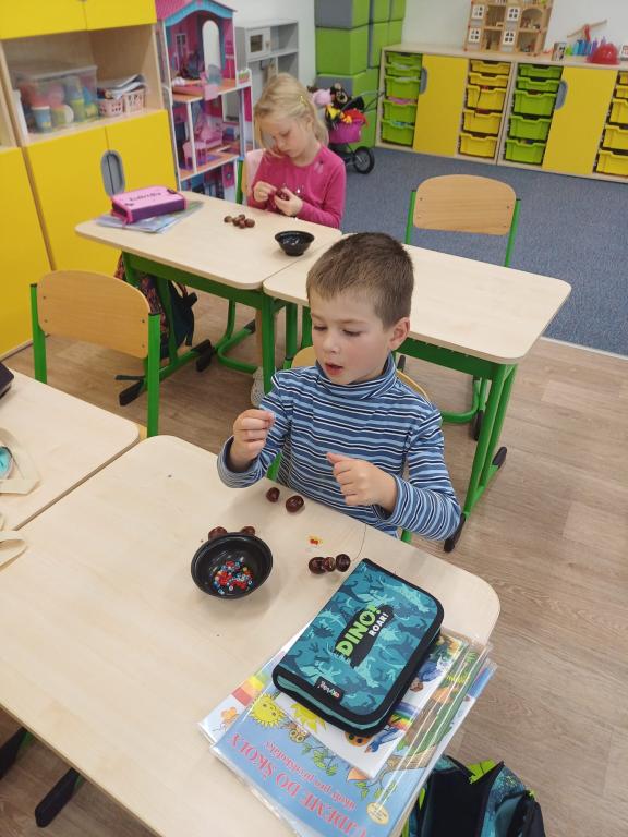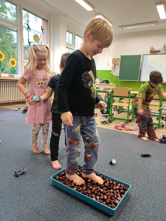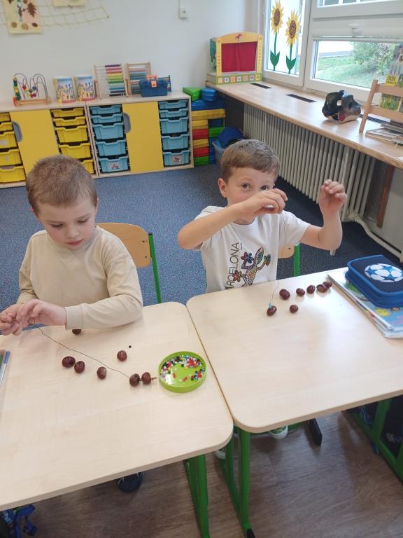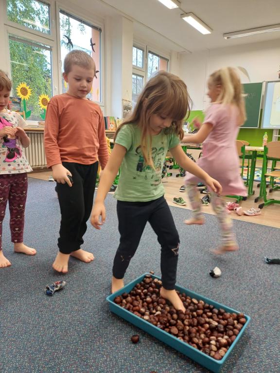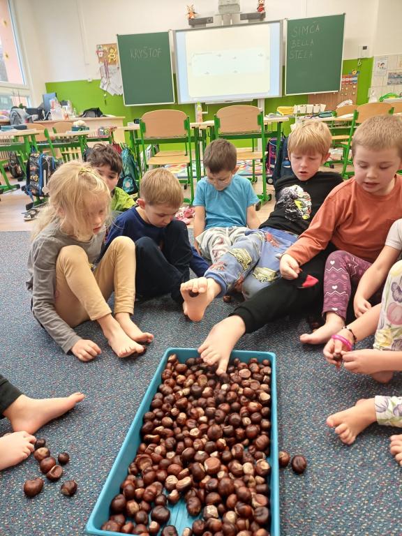 Podzimní dny přinesly mnoho námětů na hravé aktivity v přípravných třídách. Během rozmanitých činností se děti dozvídaly zajímavosti ze světa zvířat a přírody. V blízkém okolí školy poznávaly stromy, keře a podzimní plody. Ve třídě tvořily, zpívaly, četly pomocí obrázků, pilně plnily úkoly v pracovních sešitech a hrály veselé hry. Z jednotlivých činností si děti vyzkoušely také tvoření z kaštanů, frotáž listů, obtiskování ovoce či výrobu pestrobarevných dráčků. Podzimní aktivity se nám všem moc líbily. Děti si za své snažení zaslouží velkou pochvalu!