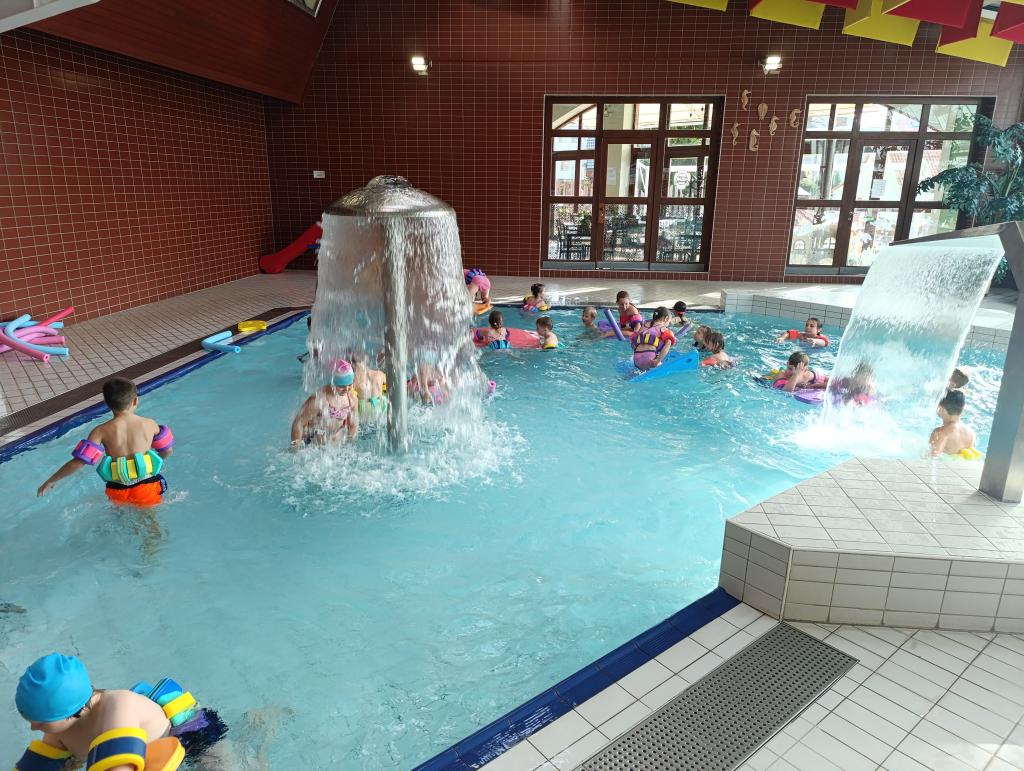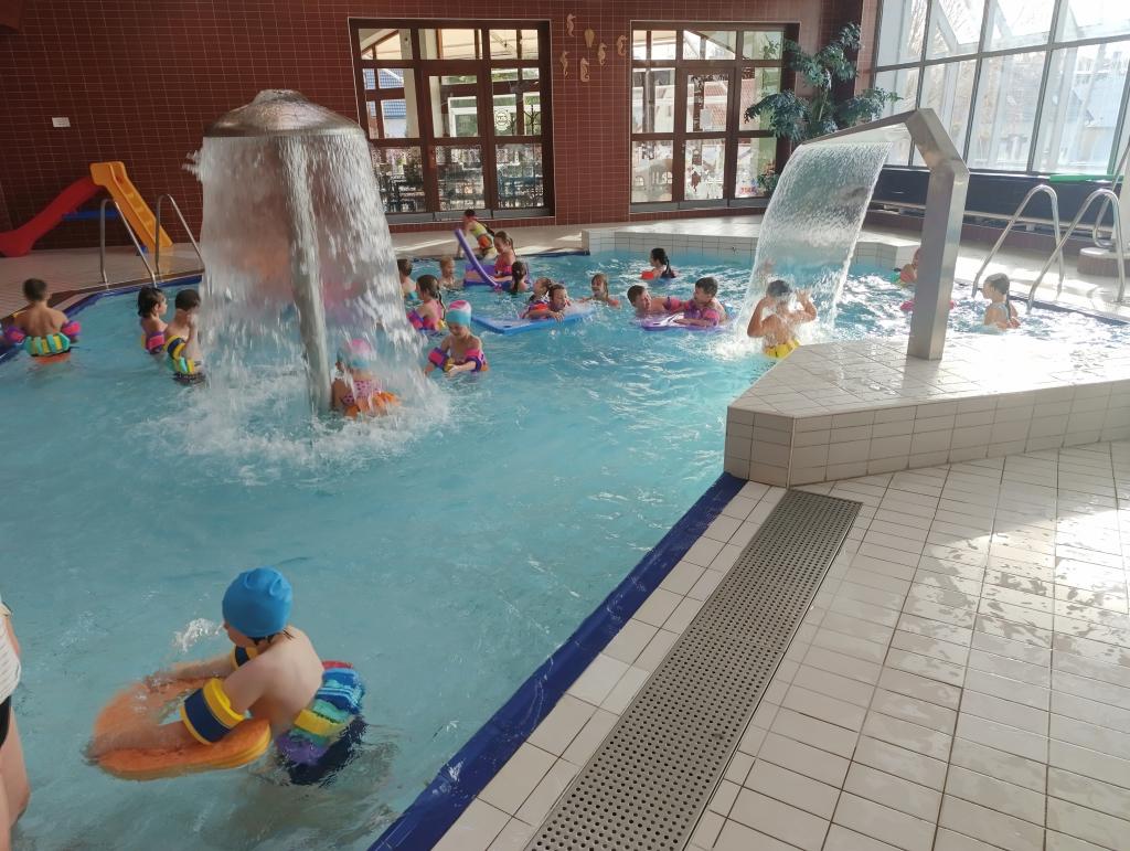 plaveckými pomůckami. Po 45 minutách si žáci odpočinuli v ohřívárně a nabrali tak síly na