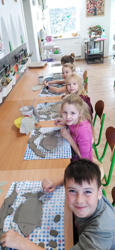 Po vyschnutí nás čeká druhá návštěva dílničky – děti své výtvory naglazují a až poté poputují do pece k vypálení. Protože jsme si už keramickou práci vyzkoušeli v první třídě, šla dětem tentokrát práce pěkně od ruky. Všichni se těší, až své hotové výrobky promění ve vánoční dárečky pro své nejbližší.