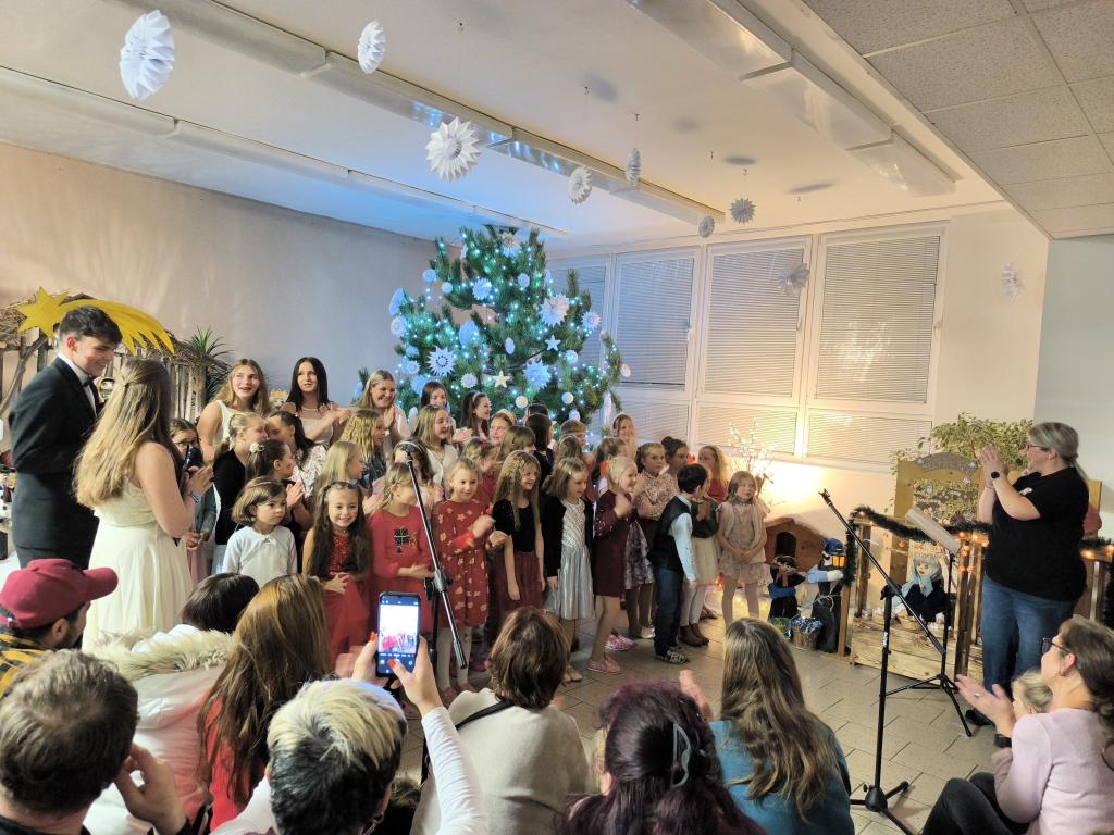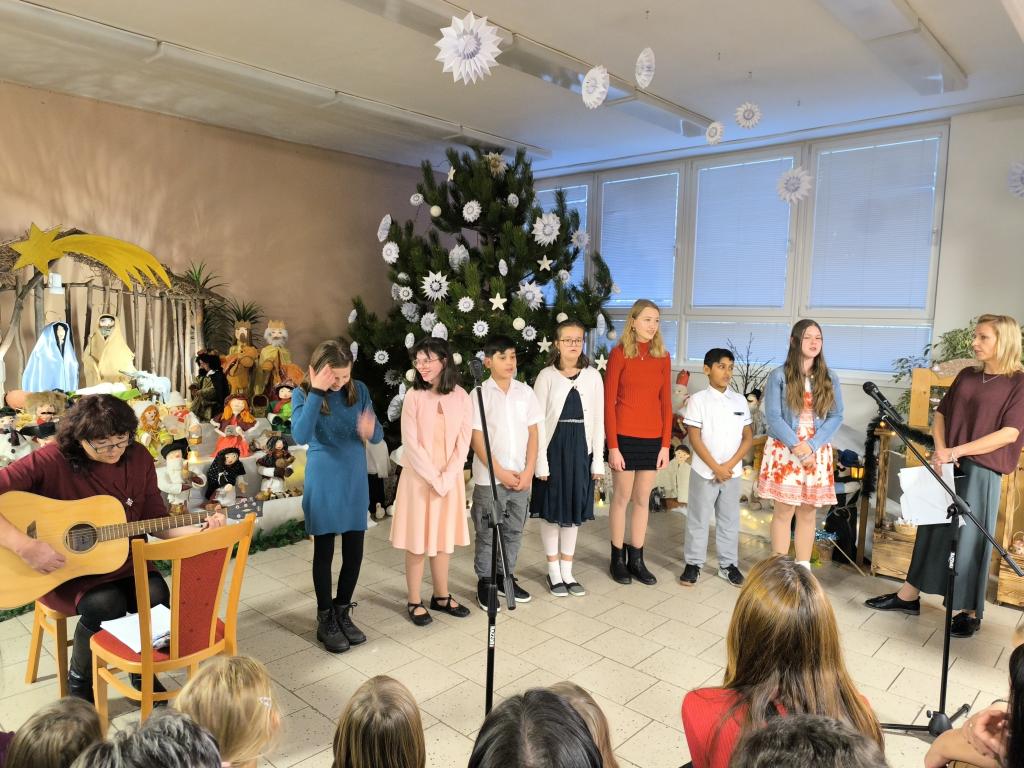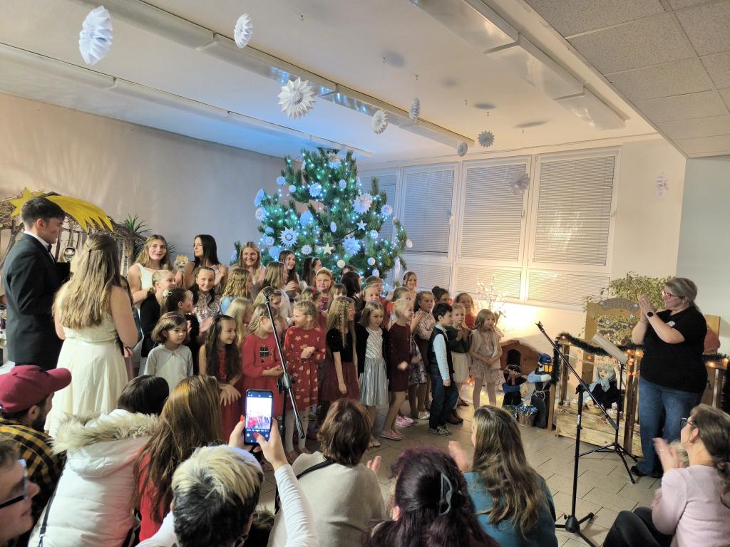 máme za sebou jubilejní desátý ročník našeho oblíbeného Vánočního těšení a opět to byl kouzelný večer plný světýlek, hudby a dětské radosti. Akce proběhla ve čtvrtek 27. listopadu a do naší školy zavítaly doslova stovky návštěvníků. Advent jsme tak společně zahájili v krásné, pohodové atmosféře. Celým programem nás letos provázeli naši šikovní deváťáci Vája a Pája, kteří si roli moderátorů užili a vedli celý podvečer s velkou jistotou a úsměvem. Úvod jako vždy patřil těm nejmenším – dětem z přípravných tříd. Jejich pásmo písniček rozzářilo vestibul a všichni se hned naladili na sváteční notu. Poté vystoupily děti ze speciální školy a jejich pečlivě připravené vystoupení nás všechny dojalo i pobavilo zároveň. Vánoční atmosféru pak nádherně podtrhl pěvecký sbor Hlásek se svým výběrem koled. Velký ohlas měly tradiční tvořivé dílničky – děti si s nadšením vyráběly dekorace, drobné dárky a ozdoby, které si poté odnesly domů. Chodbami se po celý podvečer procházeli Mikuláš, andílci a hodní čerti a rozdávali dětem úsměvy i sladkosti. Vánoční trhy opět nabídly pestrou paletu rukodělných výrobků od našich žáků, rodičů i dobrovolníků. Oblíbené vánoční kavárny byly jako vždy plné dobrot a letos jsme je obohatili o novinku – kavárnu U Zlámané lyže, kde si děti i dospělí mohli opéct marshmallow nebo si dát párek v rohlíku. Nechyběla ani Andělská pošta, kterou děti s radostí využívaly pro odeslání svých přání Ježíškovi, a samozřejmě také oblíbená Vánoční štěstíčka. Když se venku setmělo, přišel jeden z nejkrásnějších okamžiků večera – slavnostně jsme rozsvítili náš vánoční stromeček. K tomu nám pěvecký sbor Hlásek zazpíval vánoční koledy za klavírního doprovodu paní Dany Chaloupkové. Atmosféra byla opravdu nádherná a všichni, zejména ti nejmladší, byli plní radosti a očekávání.
