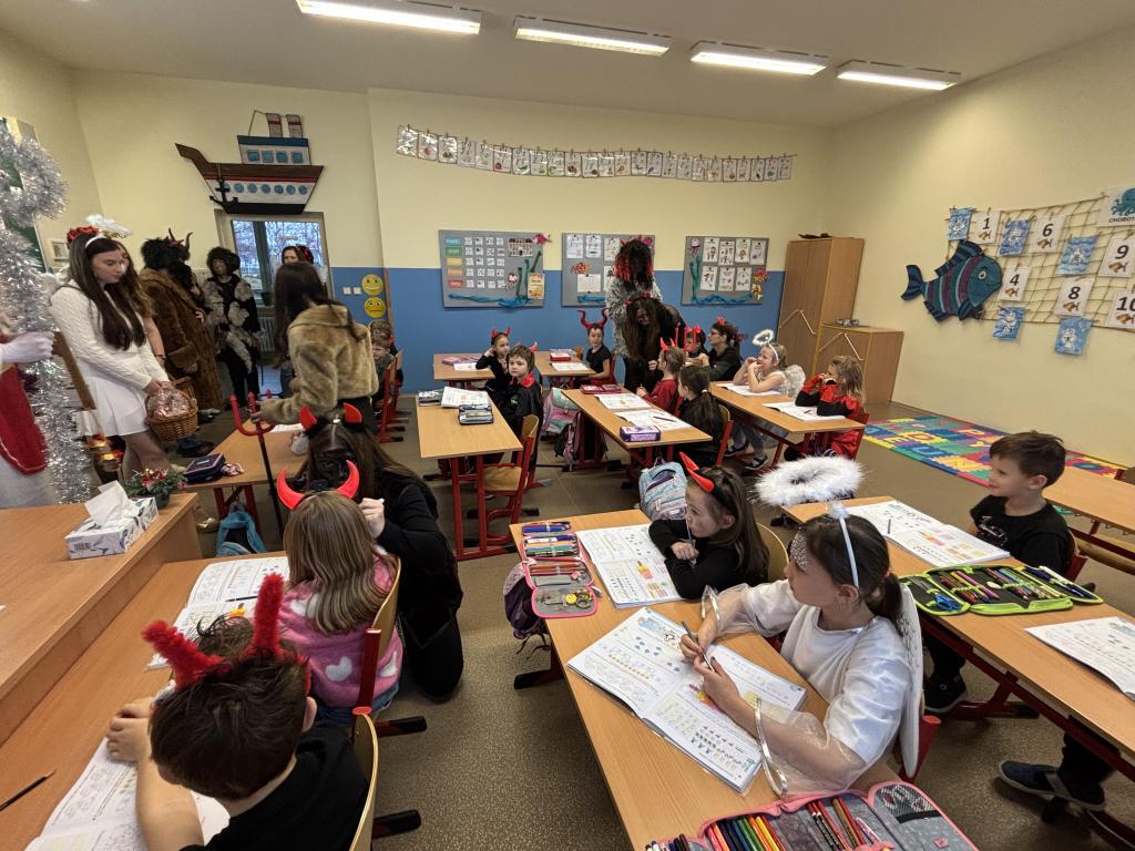 U prvňáčků to dnes vypadalo jako v opravdové pohádce – místo školáků se lavice zaplnily malými čertíky a andílky.