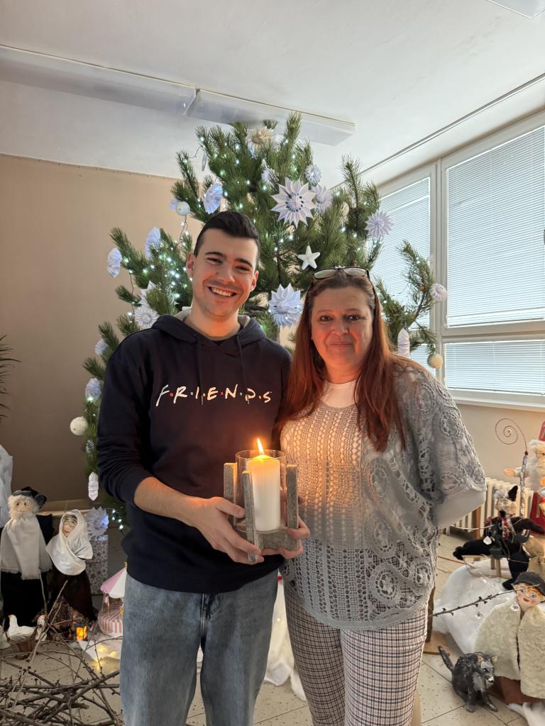 rozsvícení adventního věnce. S lehkou nervozitou, ale s velkým odhodláním zapálili