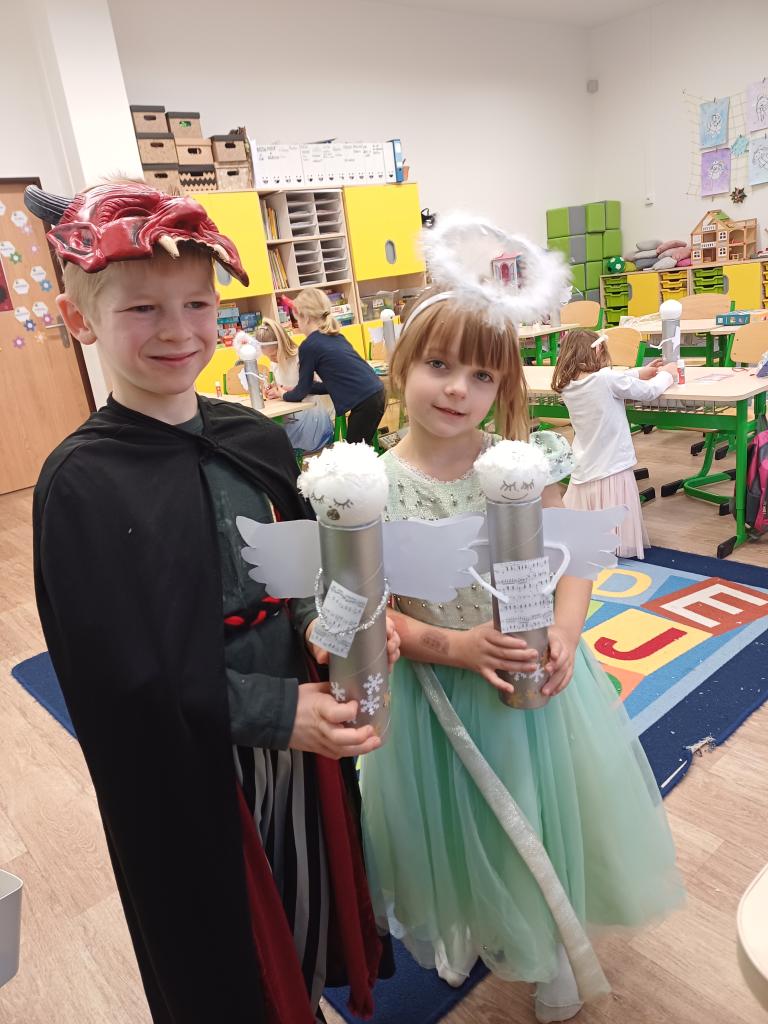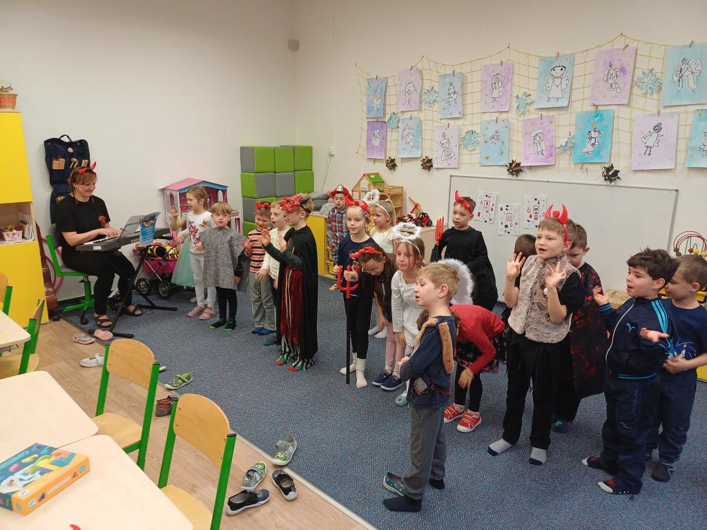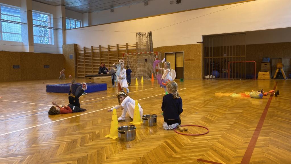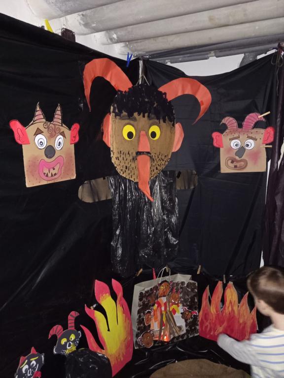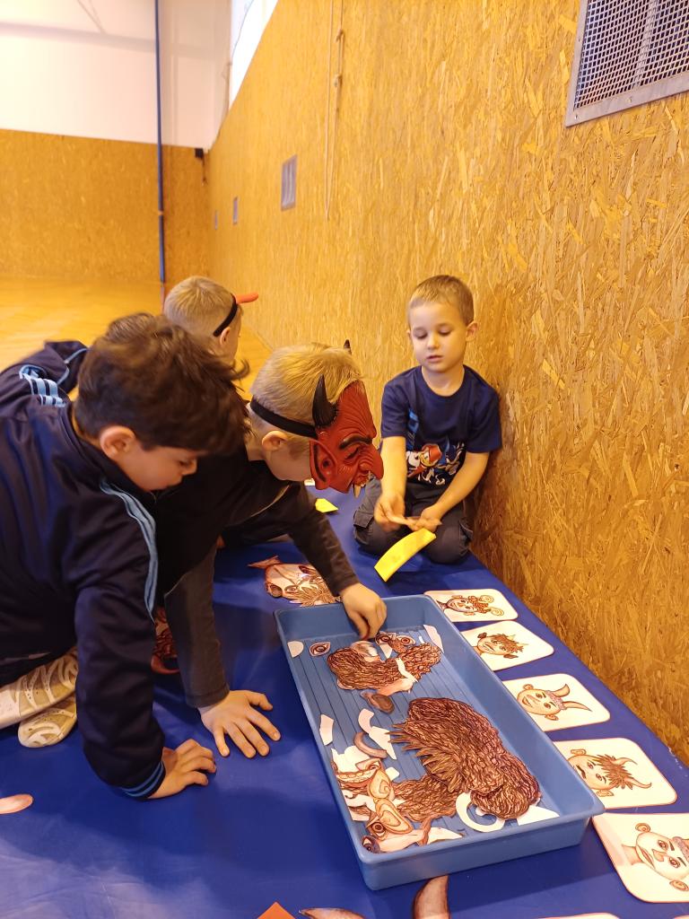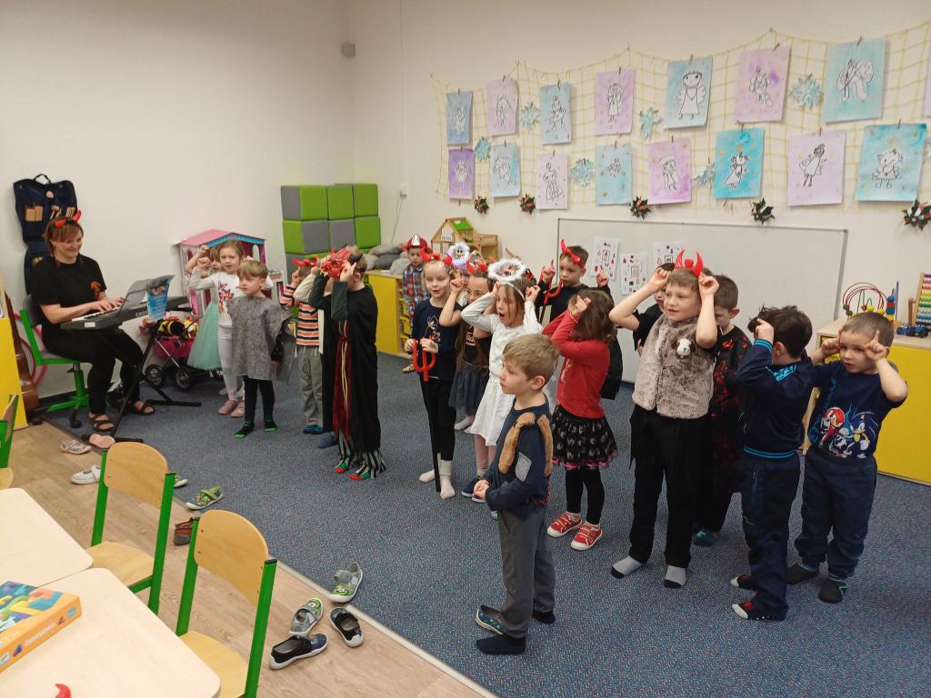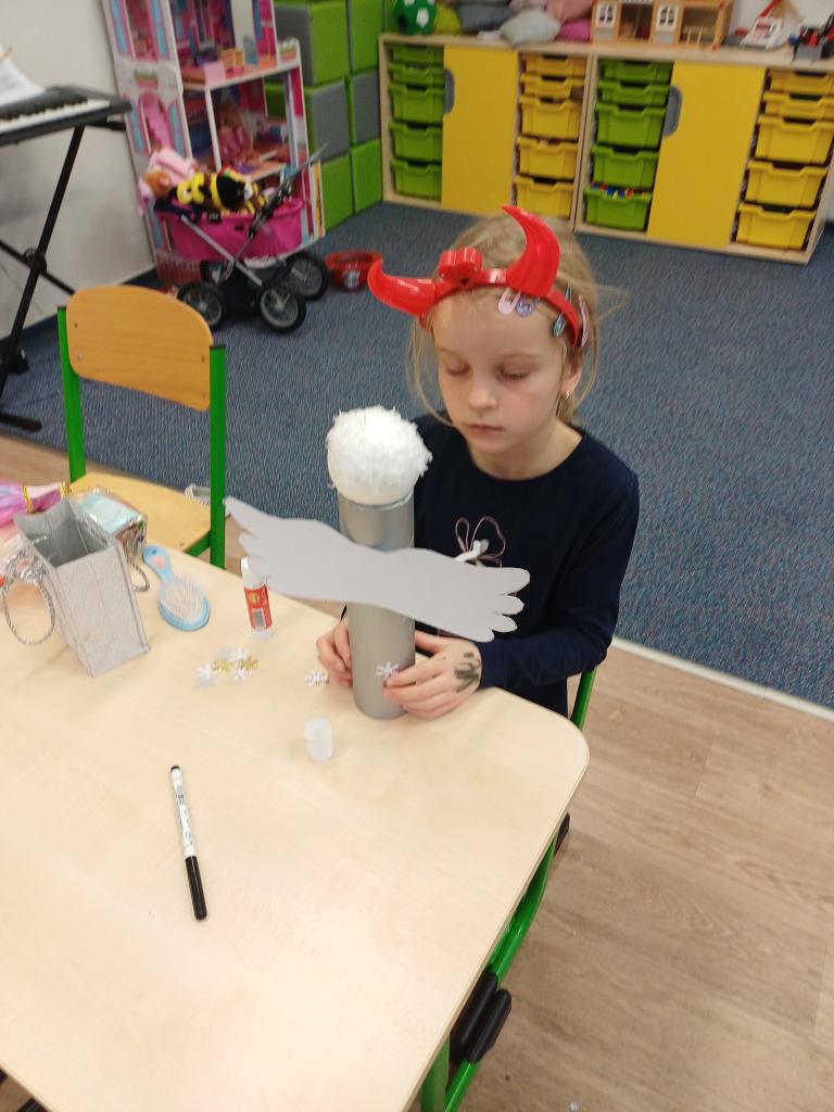 V uplynulém týdnu jsme si v přípravné třídě užili opravdu pohádkovou atmosféru, která se nesla v duchu čertů, andělů a Mikulášů. Celé naše čertovské řádění jsme zahájili návštěvou v Mateřské škole Budovatelů, kam nás pozvaly paní učitelky Radka a Mirka. Děti zde čekalo velké překvapení – peklo ve sklepě, které si pro nás paní učitelky připravily. Uvnitř nás přivítal hodný čertík, jenž si s dětmi zahrál karty. Tímto bychom chtěli paní učitelkám za milé pozvání srdečně poděkovat. Na tuto návštěvu jsme ve třídě navázali pestrými aktivitami. Děti si zpívaly čertovsko-andělské písničky, výtvarně tvořily a plnily tematické úkoly, které rozvíjely jejich fantazii, jemnou motoriku. Velkým zážitkem bylo čertí dopoledne v tělocvičně, kde jsme připravili řadu zábavných sportovních her. Děti si vyzkoušely skákání v pytli, zdolávaly pekelnou překážkovou dráhu, sestavovaly velkou hlavu čerta a také soutěžily v oblíbené hře - hod bramborou do hrnce.