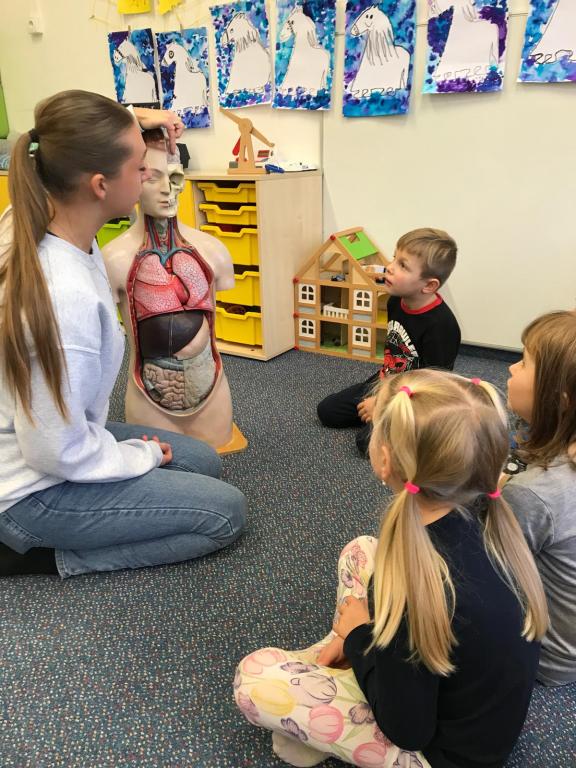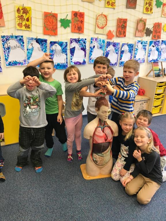 Ještě před zahájením adventu jsme se s dětmi v přípravných třídách učili o lidském těle. Děti se zaujetím plnily rozmanité úkoly, které je seznámily se zajímavostmi a fakty o lidském těle. Navštívili jsme přírodovědnou učebnu školy, kde jsme si prohlédli lidskou kostru. Seznámili jsme se také s modelem lidského trupu a některými vnitřními orgány člověka. Připomněli jsme si rovněž zásady osobní hygieny a zdravého životního stylu. Hravé a názorné učení děti moc bavilo.