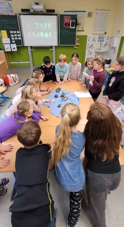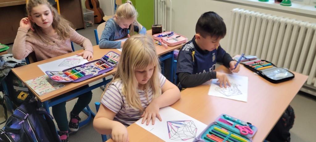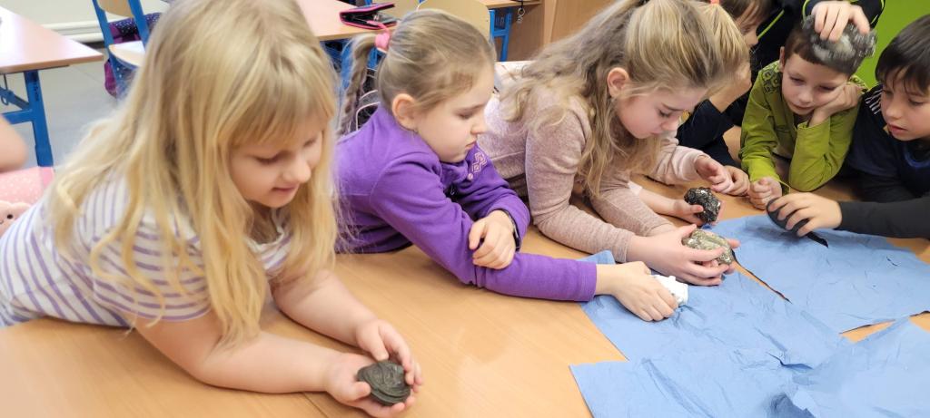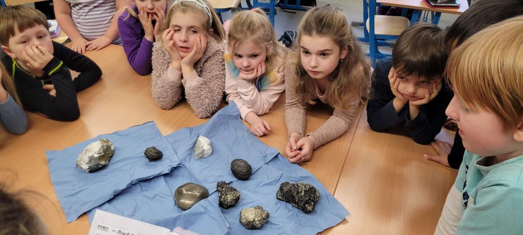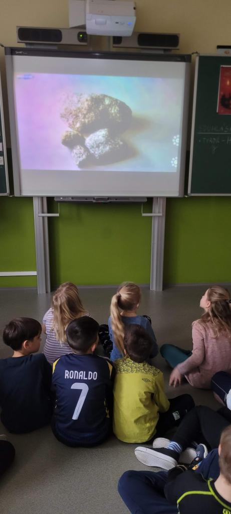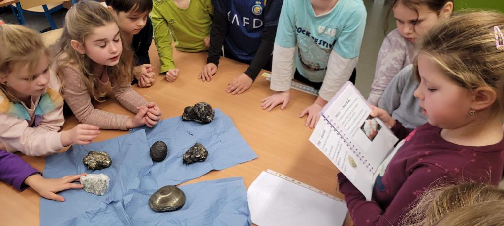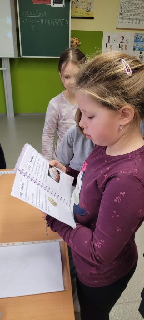 Žirafky už tři měsíce pravidelně poctivě čtou knížky podle svého výběru. Za 25 přečtení v měsíci si prvních deset čtenářů vybírá z karet aktivit. Tento měsíc si jednu kartu vybrala i Terinka. Byla to karta Hodina na přání. Místo českého jazyka si přála dětem ukázat horniny a nerosty, které přinesla od svého taťky tuneláře (razí tunel pro metro v Praze). Připravila si krátké povídání o každém exponátu. Děti si je mohly kalcit, pyrit a konkreci z břidlice nejen prohlédnout, ale i osahat, otěžkat apod. V krátké videu se děti dozvěděli jak vznikají horniny a nerosty. Na závěr hodiny Terinka rozdala dětem omalovánky diamantů. Každý si tak z hodiny na přání odnášel velké bohatství nejen nových vědomostí, ale i v podobě svého diamantu. Terince i jejímu tatínkovi děkujeme za moc hezky připravenou hodinu.