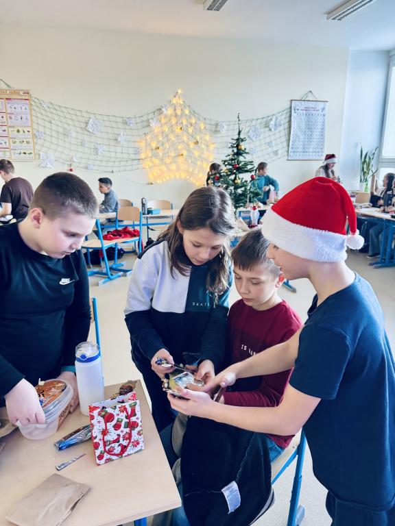 Na vánoční besídce jsme si společně zasoutěžili a zazpívali, popřáli našim třem oslavencům