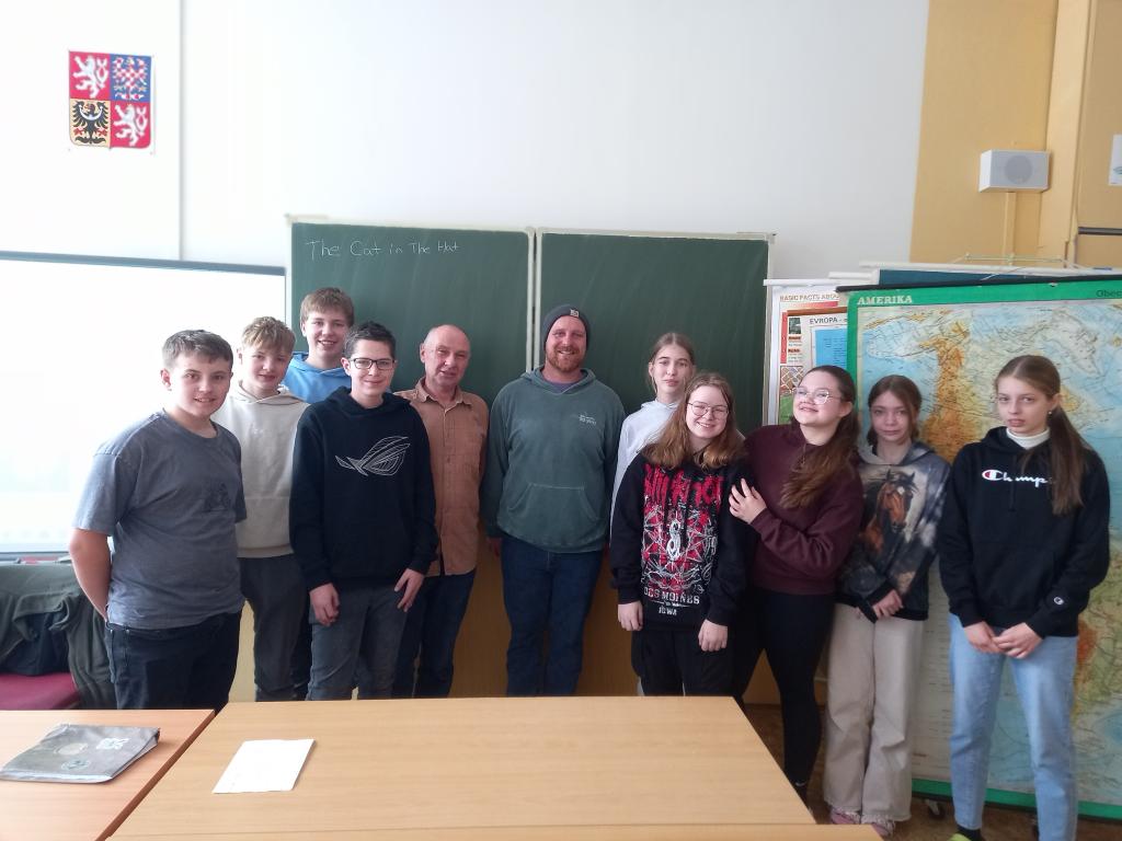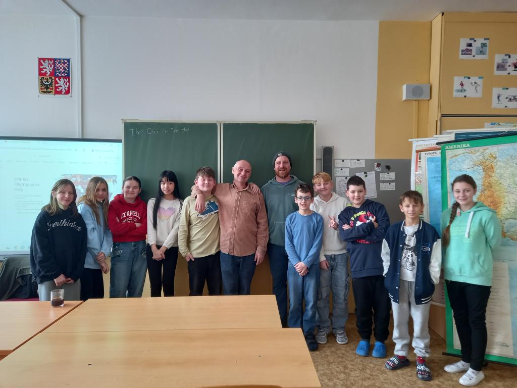 Dne 14.1.2026 navštívil naši školu rodilý mluvčí Jordan z Kanady. Se žáky ze šesté a osmé třídy jednu vyučovací hodinu v každé třídě konverzoval na různá témata, např. Vánoce, cestování, volný čas, měna-peníze u nás, v Kanadě a USA, povolání, jekjich budoucnost atd.