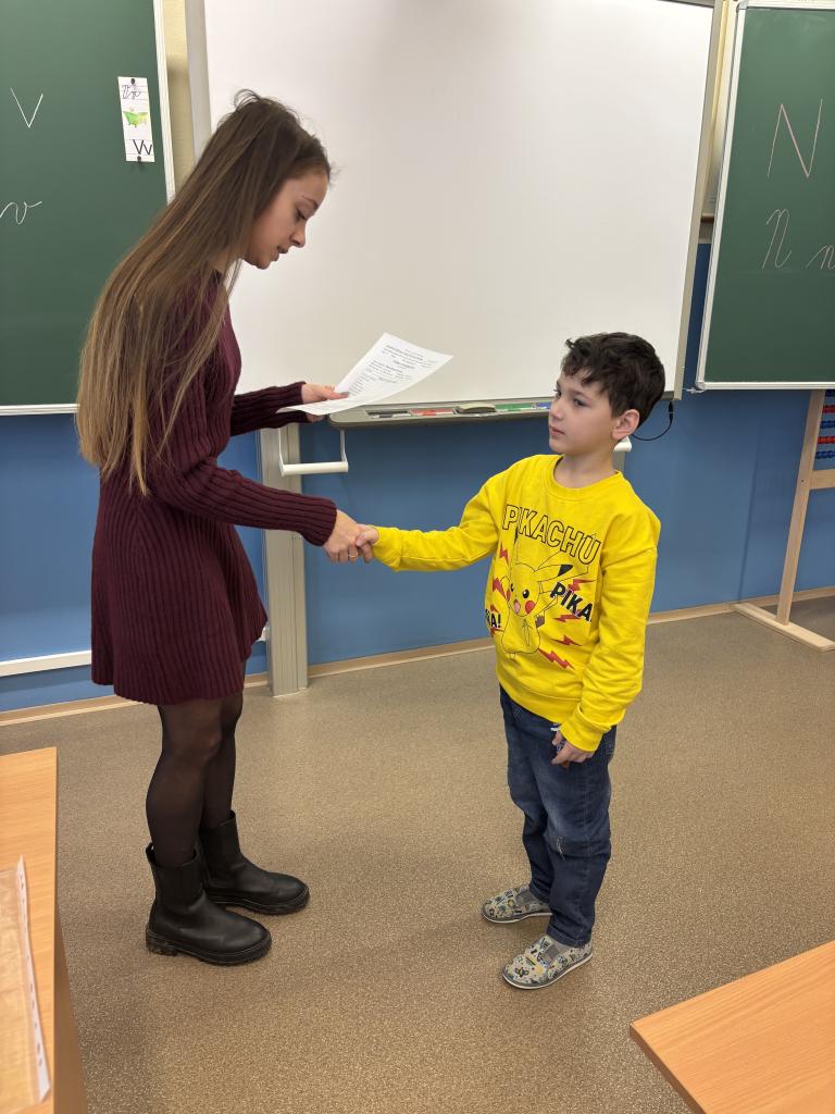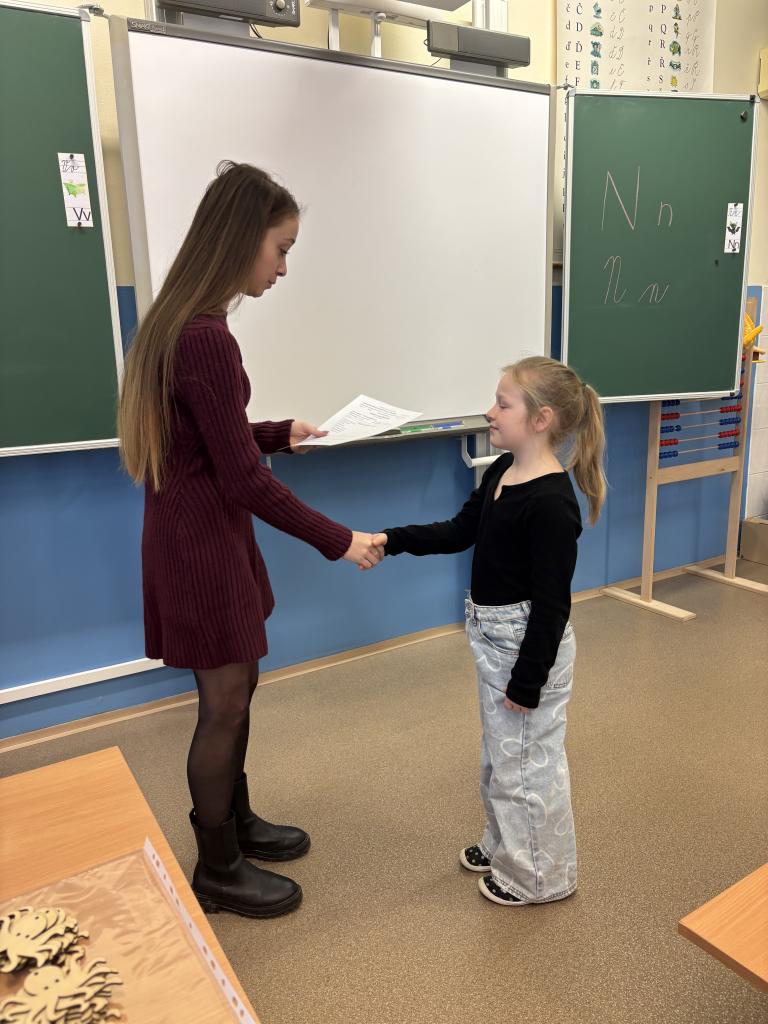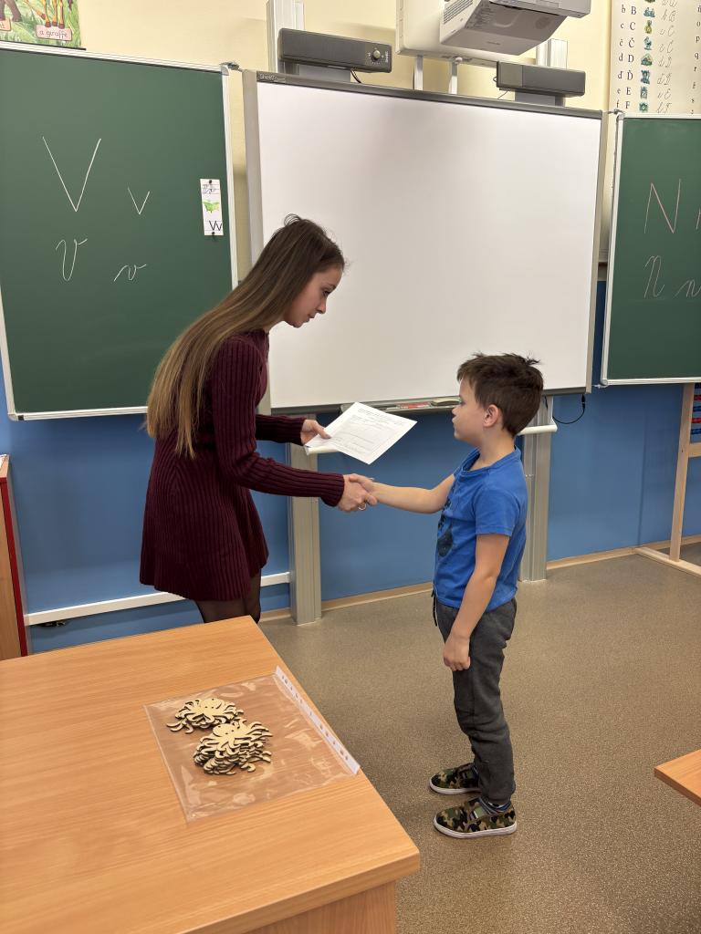 V naší třídě Chobotniček byl den rozdávání prvního pololetního vysvědčení opravdu slavnostní. Naši prvňáčci už nejsou žádní nováčci – za půl roku ve škole zvládli spoustu nových věcí a udělali obrovský kus práce.