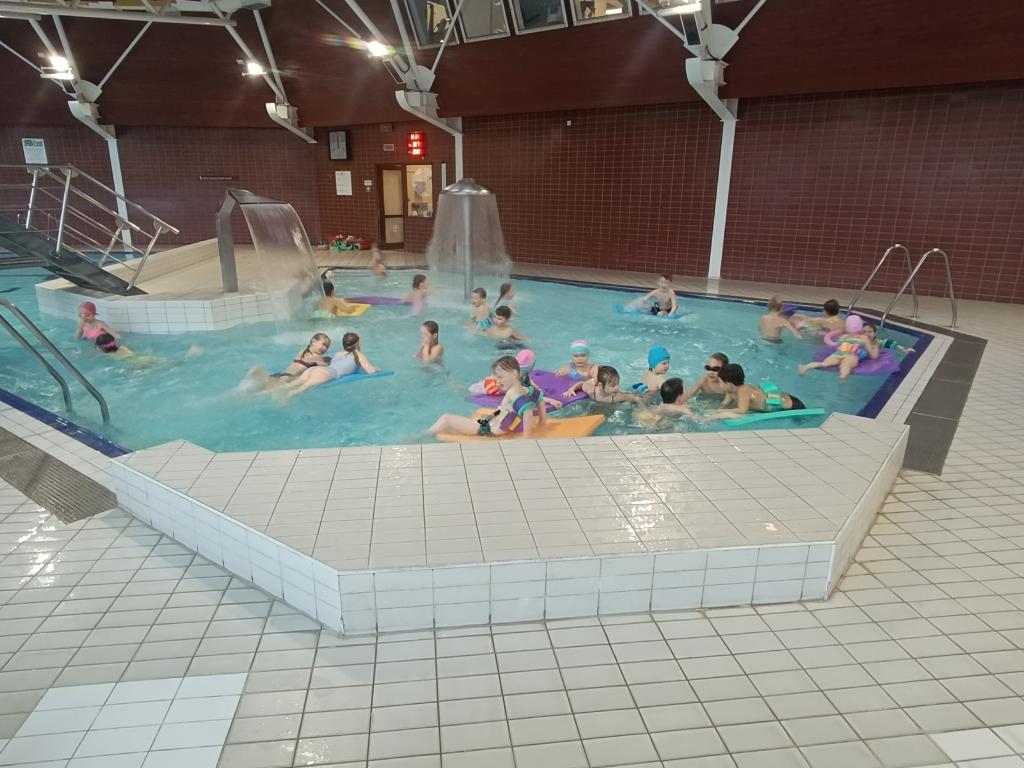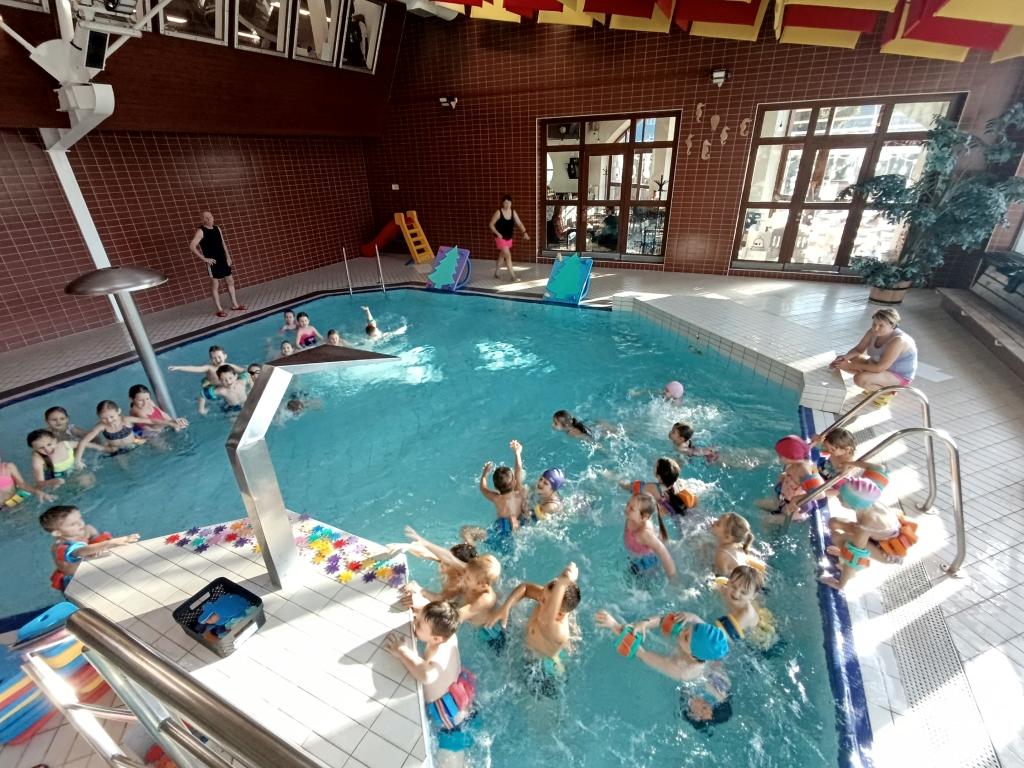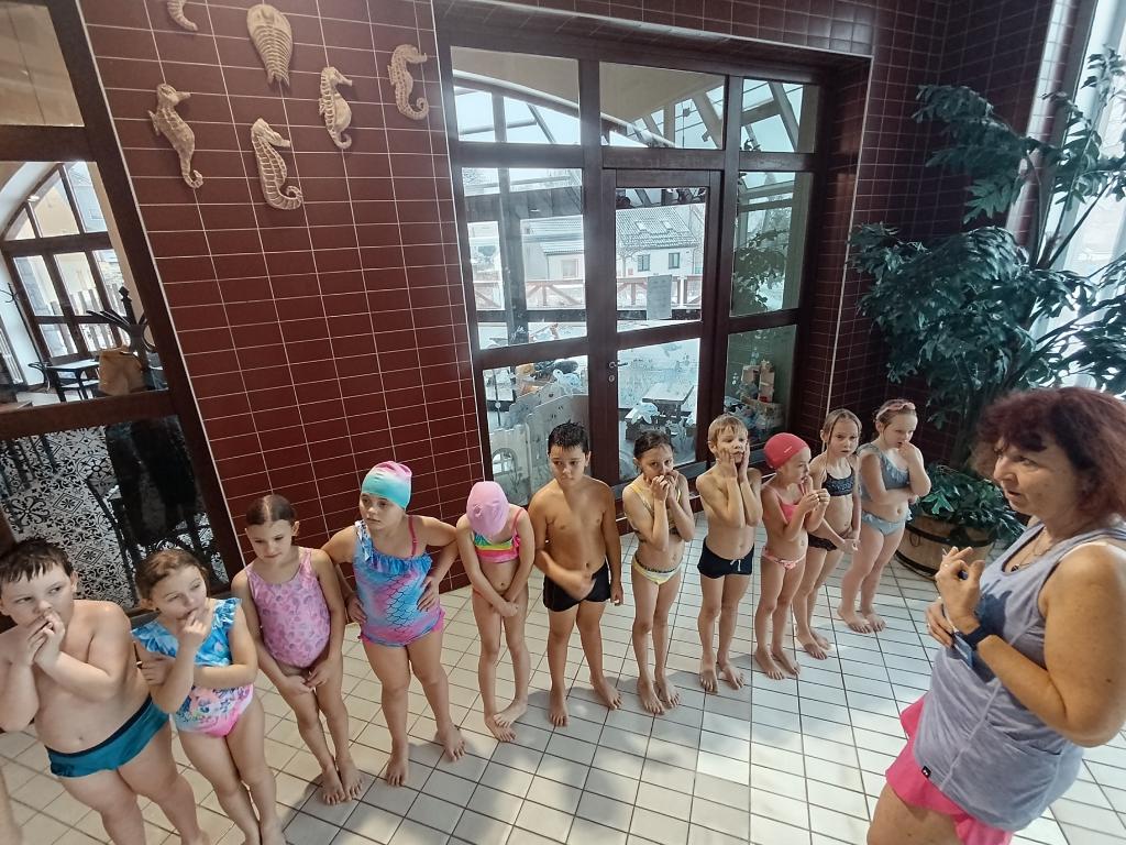 Poslední plavecká lekce našich prvňáčků byla plná radosti a smíchu. Chobotničky a Krabíci se sešli v bazénu naposledy v tomto pololetí a ukázali, co všechno se během plaveckého výcviku naučili.