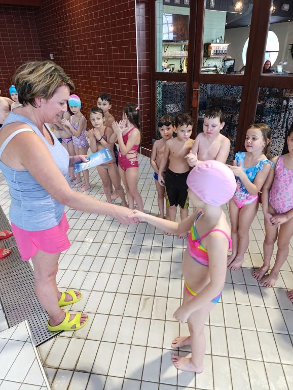 Na závěr čekalo děti milé překvapení – mokré vysvědčení. To si děti zasloužily za snahu, odvahu a pravidelnou účast na plavání. Vysvědčení potěšilo a vykouzlilo úsměvy na dětských tvářích. Někteří malí plavci si ho hrdě odnášeli domů jako důkaz, že se vody už jen tak nezaleknou.