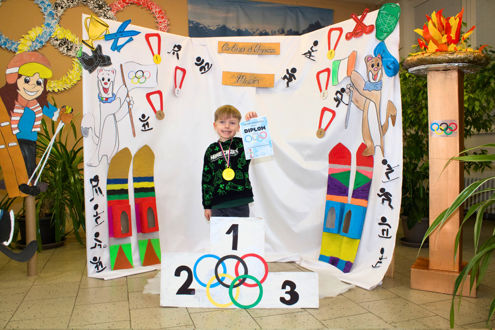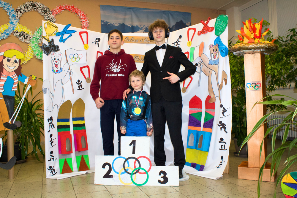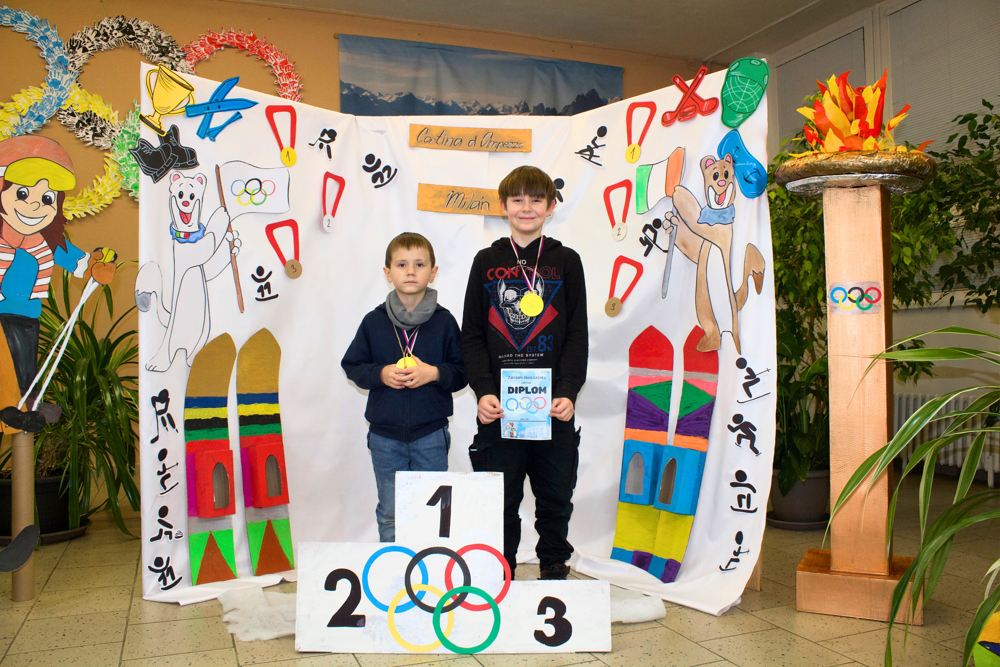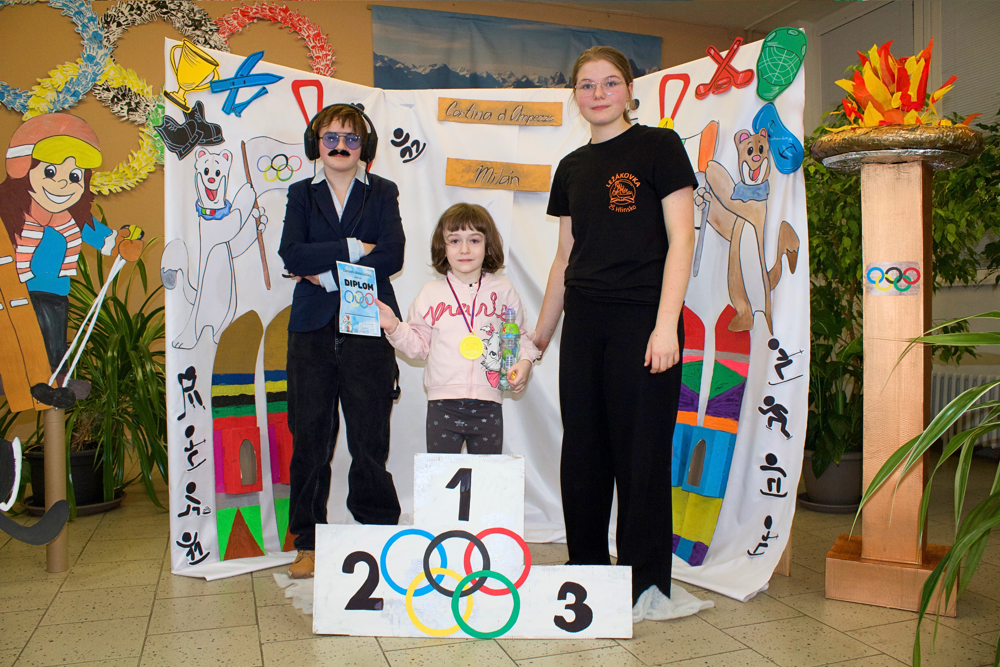 Dne 22. 1. 2026 proběhl na naší základní škole tradiční Den otevřených dveří. Vzhledem k nadcházející světové sportovní události bylo téma jasné. Zimní olympijské hry! Celá škola se zbarvila nejen do tradičních olympijských barev, ale i do vlastenecké trikolóry. To ale nebylo všechno! Naši žáci se změnili ve sportovce, trenéry, sportovní hlasatele, komentátory, rozhodčí apod. Po škole Vás tedy najednou úplně klidně mohla provést například krasobruslařka s bruslemi. Hned v úvodu příchozí dostali vstupenku, díky které byli vpuštěni do olympijského areálu. Prošli okolo plápolajícího olympijského ohně a pokračovali k prvnímu stanovišti, kde si vyzkoušeli spoustu zajímavých aktivit. Mohli se zde občerstvit čajem, kávou či perníčkem. Sílu totiž hned potřebovali! Na malé závodníky zde čekal celý stadion! Tady si malí sportovci vyplnili startovací listiny a naskočili do závodního bobu. Po sjetí dráhy si nazuli lyže a odběhli lyžařskou trasu. Díky tomuto úsilí se probojovali až ke stupňům vítězů, kde na ně čekala antická bohyně, jako odkaz na starověké olympijské hry. Ta jim slavnostně předala medaili a diplom. Odtud mohli návštěvníci pokračovat v dalších disciplínách, které pro ně byly připraveny v oddělení školní družiny. Zde si vyrobili maskota olympiády a mohli nahlédnout do krásných a barevných tříd. Další aktivity čekaly na prvním stupni, kde si všichni návštěvníci mohli prohlédnout třídy. Další úsilí museli malí sportovci prokázat v učebně jazyků. Tato moderně vybavená třída úplně vybízela k turnaji. Bylo velmi obtížné porazit paní učitelku Míšu, ale proslýchá se, že některým návštěvníčkům se to podařilo! Odpočinout po takovém zápasu si děti mohly díky ukázkám v učebnách fyziky, přírodopisu a zeměpisu. V učebně robotiky si každý mohl vyzkoušet naprogramovat a vést skutečného robota a vidět v procesu 3D tiskárny. Obdiv si zcela jistě zasloužili žáci naší školy, kteří si i s náročnými technologiemi dokázali hravě poradit a prokázat tak tvůrčí i logické myšlení. Na závěr přišlo na řadu opět občerstvení. Po tolika aktivitách a výkonech hned v několika typech sportů muselo vyhládnout opravdu každému! K ukázce byla otevřena i venkovní učebna, která pro výuku skýtá mnoho možností a výhod. Protože kdo by se nechtěl někdy učit venku, na vzduchu, na sluníčku, ale se všemi věcmi, které k pohodlnému učení potřebuje? Z venkovní učebny vedla cílová rovinka. Každému sportovci se zde dostalo podpory, potlesku, pochvaly a medaile s diplomem!