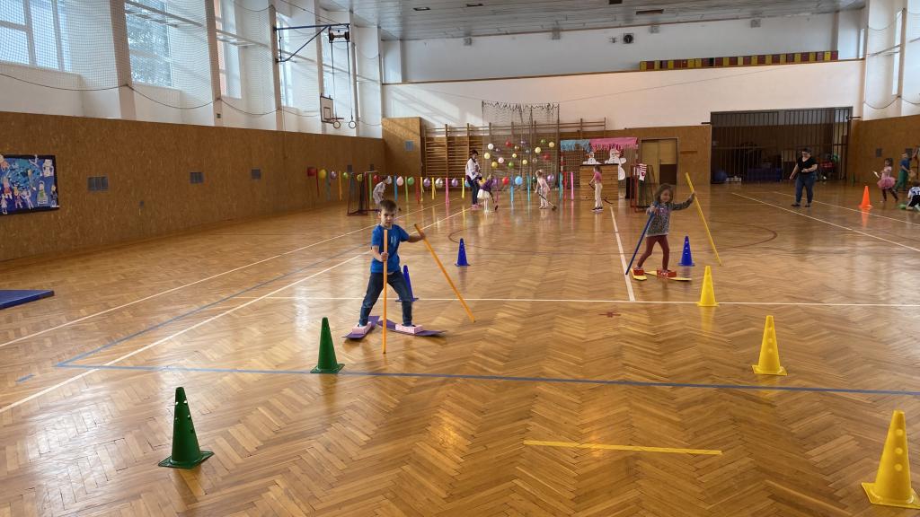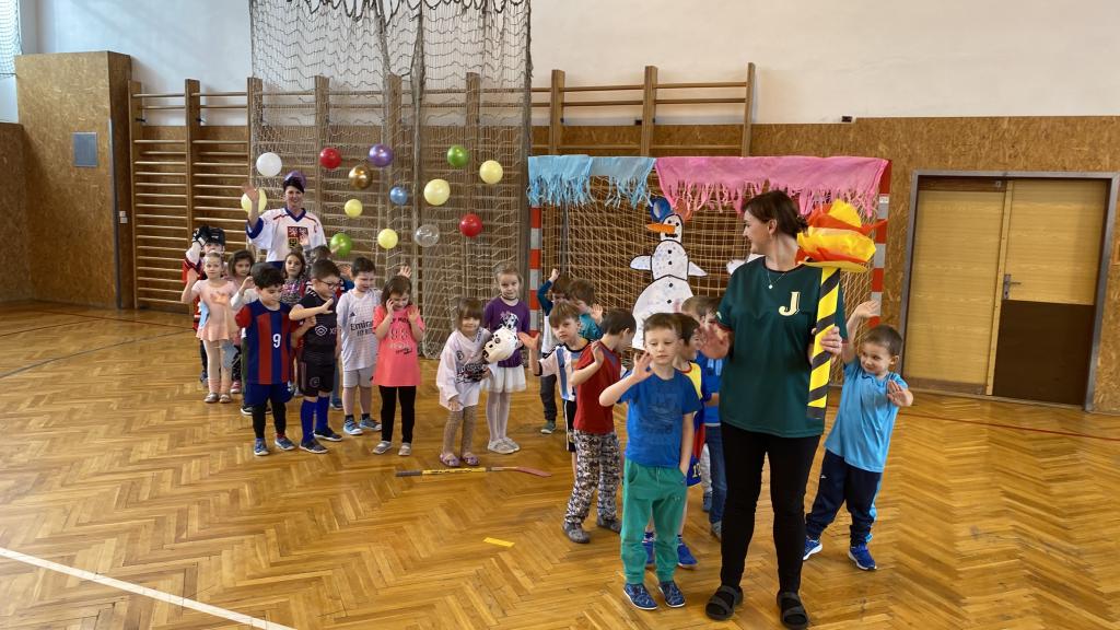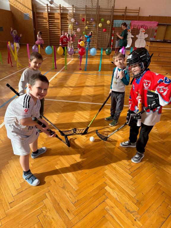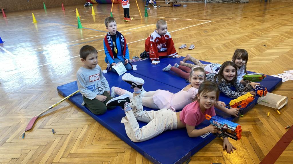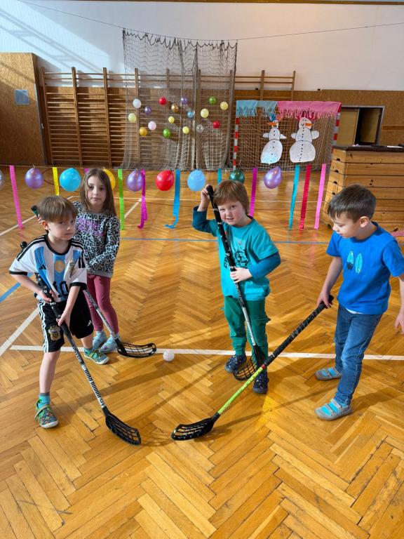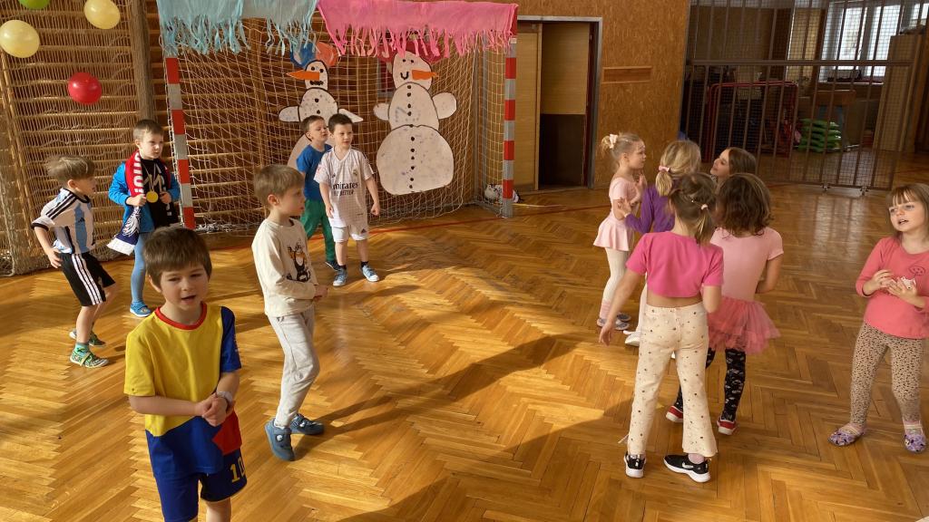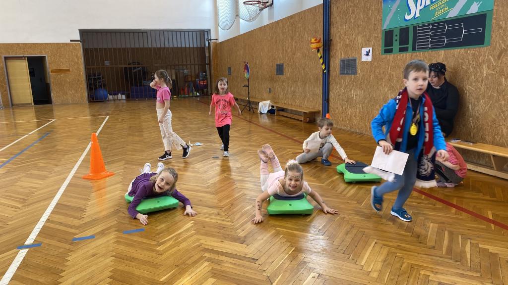 Celé zábavné dopoledne se neslo v duchu OLYMPIJSKÝCH HER. Děti se proměnily ve sportovce a svědomitě plnily všechny sportovní disciplíny. Sešli se zde lyžaři, hokejisti, biatlonisti i jezdci na bobech. Ti všichni byli za své úspěšné snažení odměněni dárečky, které si vytočili na kole štěstí. Poté již následovala patřičná oslava, na které se radostně tančilo a dovádělo. Děti si akci velice užili.