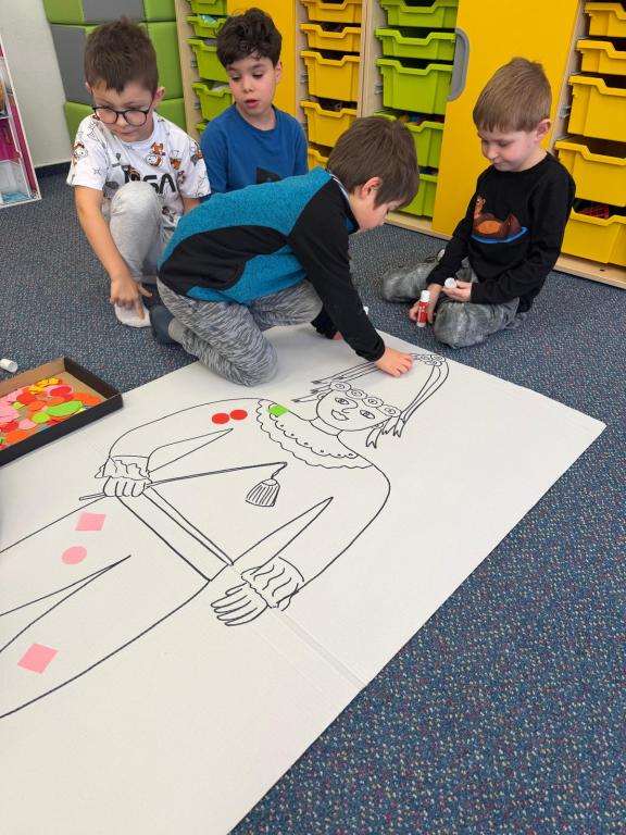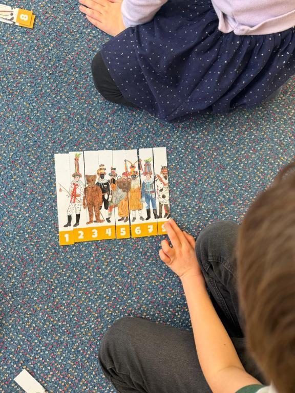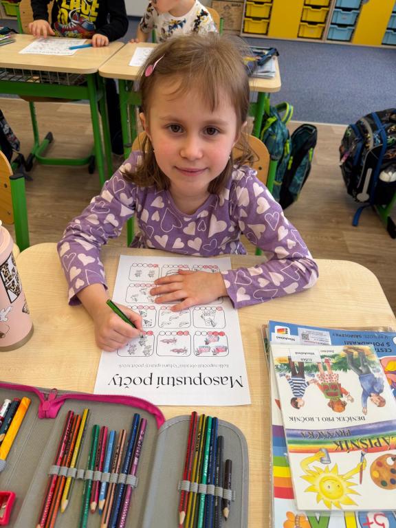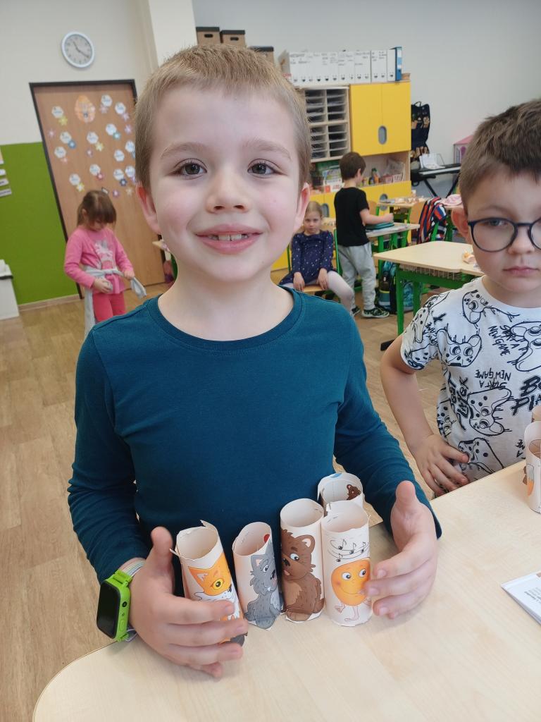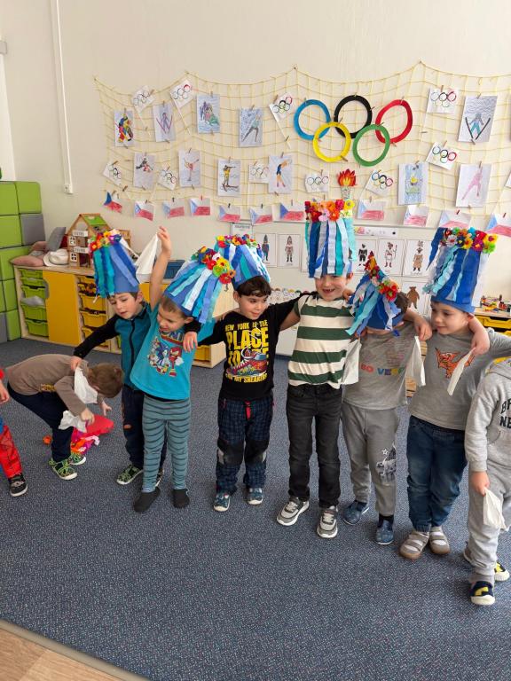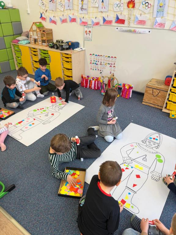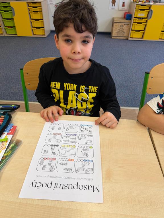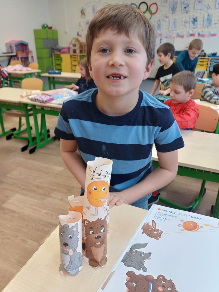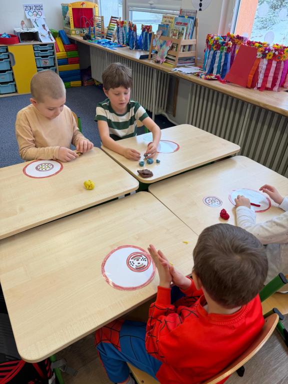 Program jsme zahájili pohádkou O koblížkovi, protože právě koblihy, koláče a další dobroty jsou neodmyslitelnou součástí masopustního období. Povídali jsme si o tom, proč se masopust slaví a jaké zvyky k němu patří. Děti si poté vyrobily barevné čepice, jaké nosí Laufr, a naučily se také jeho veselý taneček. Nechybělo ani tvoření z modelíny – modelovali jsme koláče a společně je počítali. Při této aktivitě jsme si procvičili nejen jemnou motoriku, ale i předmatematické dovednosti.Společně jsme si představili jednotlivé masopustní postavy, které si děti vybarvily podle vlastní fantazie. Na závěr jsme procvičili geometrické tvary, kterými jsme ozdobili postavu Laufra.