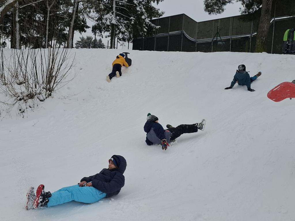 ukázali tedy Hlinsku, jak se řádí ve sněhu. Že největší legrace při bobování je jízda ve skupince a že