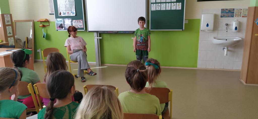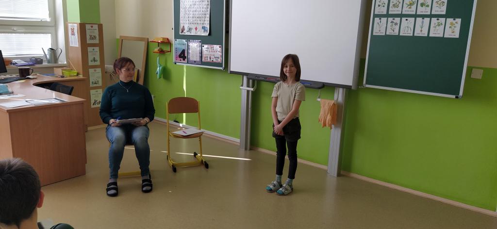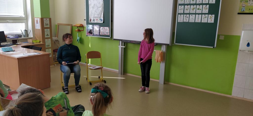 Dne 19. března se v naší třídě Medvíďátek uskutečnilo třídní kolo recitační soutěže. Děti se na tuto událost poctivě připravovaly. Nejenže se naučily své básničky zpaměti, ale věnovaly se také jejich správnému přednesu a procítění. Všichni účastníci podali skvělé výkony a bylo znát, kolik úsilí do přípravy vložili. Porota to neměla vůbec jednoduché, přesto nakonec rozhodla o následujícím pořadí: na prvním místě se umístil Štěpán Homolka s básní Velryba, na druhém místě Viktorie Chourová s básní Co všechno maluje slunce a na třetím místě Sára Poláčková s básní Ptám se, ptám se, pampeliško. Tito tři žáci postupují do školního kola recitační soutěže, které se uskuteční ve čtvrtek 26. března v naší škole.
