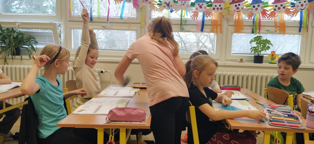 Na Apríla 1. dubna, kdy se tradičně dělají různé legrace a žertíky, jsme si ve třídě Medvíďátek připravili opravdu netradiční den. S dětmi jsme si totiž na celé vyučovací dopoledne vyměnili role. Medvíďátka se postupně střídala v roli učitelek a učitelů. S velkým nadšením se děti ujaly výuky svých spolužáků, vysvětlovaly úkoly, vyvolávaly i „zkoušely“ ostatní a také kontrolovaly splněné úkoly. Paní učitelka si naopak sedla do školní lavice a stala se na chvíli spolužačkou svých Medvíďátek.